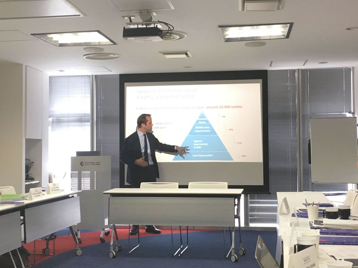 En introduction de ces journées B2B a eu lieu un séminaire de présentation du marché japonais et de ses divers aspects de 9h à 11h30, afin de préparer les participants à leurs rendez-vous respectifs. La structure et l’évolution du marché japonais, le droit des contrats et de la propriété intellectuelle au Japon, l’environnement bancaire et l’accompagnement international du Crédit Agricole, le marché des biens de consommation et la culture du business au Japon, ont ainsi compté parmi les diverses problématiques traitées.