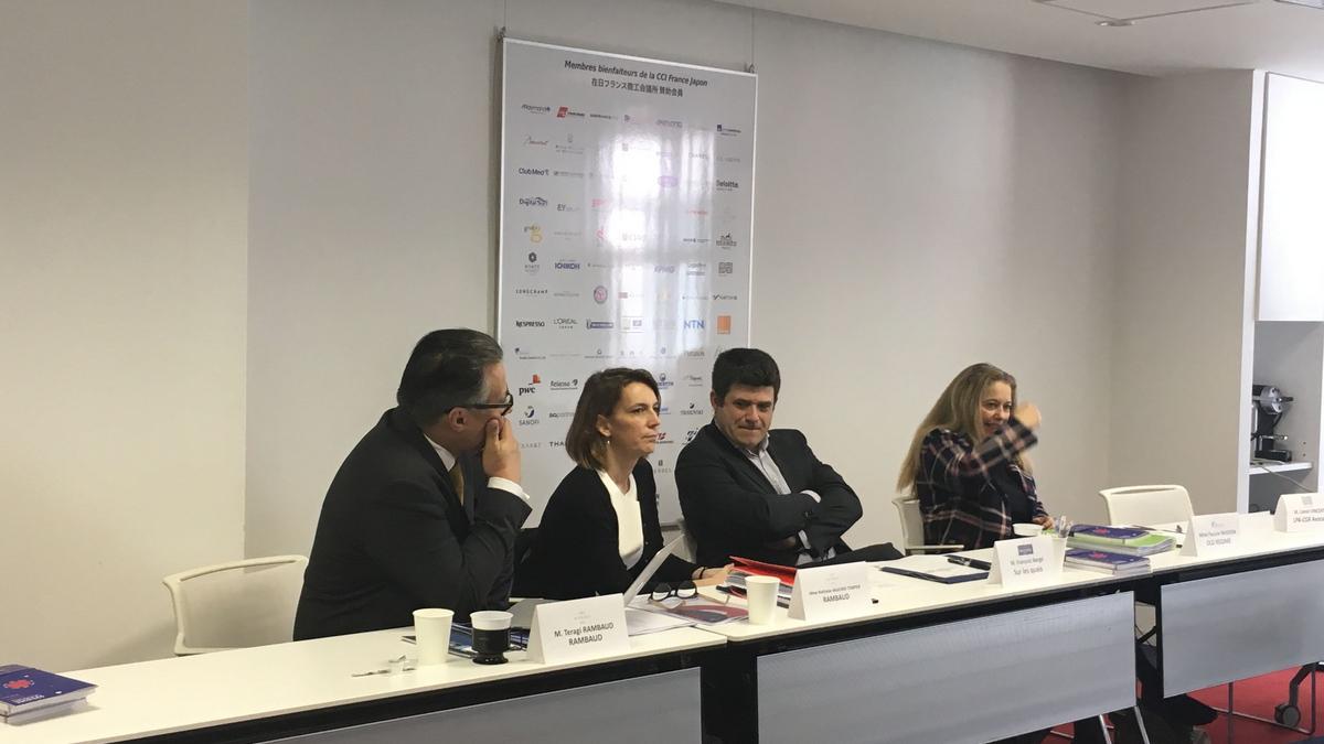 Avec une volonté commune de transmettre leurs connaissances aux entreprises, M. Edouard CAZES, responsable commercial CCI France Japon, Maître Lionel VINCENT, avocat au barreau de Paris (LEFÈVRE PELLETIER&ASSOCIÉS), Mme Yuka SAIKI, responsable internationale desk Japon au Crédit Agricole, M. Guillaume CALLOUD, managing director chez Nichifutsu Boeki et Mme Yui WATANABE, responsable commerciale CCI France Japon, se sont relayés lors du séminaire afin d’aborder ces sujets.