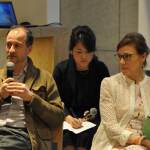 Au cours de cet échange, animé par Marion Raimbeaux, Chargée de mission auprès du Directeur de la Villa Kujoyama, les artistes ont pu expliquer comment cette résidence à Kyoto leur avait apporté un regard nouveau sur leur démarche créative, mais aussi comment leurs rencontres, leurs collaborations et l’art japonais avaient influencé leur travail. Les participants venus en nombre ont ensuite pu poser leurs questions aux artistes. L’échange s’est poursuivi autour d’une coupe de Champagne Pommery et d’un délicieux cocktail.