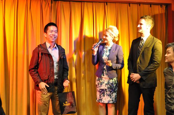 Après le concert, les participants ont été invités à l’intérieur de la Brasserie pour le tirage au sort des lots de la tombola, effectué par Clara Bodin, Ambassadrice de Bonjour France 2016. Les heureux gagnants sont repartis avec des éléments de mobilier Lafuma, des bouteilles de champagne Laurent Perrier et des boîtes de thé Janat. Une fois les lots distribués, la Brasserie s’est transformée en piste de danse jusque tard dans la nuit.