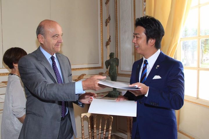 Le 26 septembre 2016, lors de la visite d’une délégation japonaise en Gironde, Alain Juppé, maire de Bordeaux et son homologue de Fukuoka Soichiro Takashima, ont signé, un programme triennal d’actions entre les deux villes jumelées.