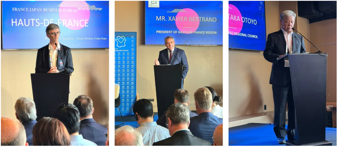 Le 17 septembre 2025, près de 110 participants se sont retrouvées au Pavillon France de l’Exposition Universelle Osaka Kansai pour assister au Séminaire organisé par la Région Hauts-de-France avec le soutien de la CCI France Japon. Aux côtés de Monsieur Xavier Bertrand, Président de la Région Hauts-de-France, la délégation régionale, forte de 30 personnalités locales, a échangé avec des dirigeants d’entreprises de la région Kansai, ainsi qu’avec des représentants de la JETRO et des collectivités locales d’Osaka, Kyoto et Hyogo.