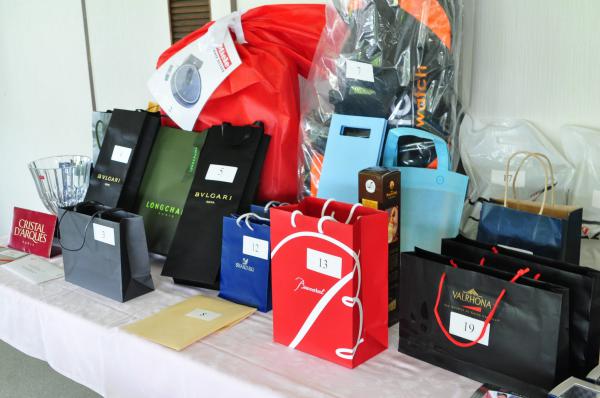 Par équipes de 3 ou 4, 68 golfeurs se sont affrontés sur le green pour le sport, mais aussi pour remporter de magnifiques lots offerts par les sponsors de l’événement. Après le jeu, les participants se sont rassemblés pour un repas convivial au cours duquel les noms des vainqueurs ont été annoncés. Tous les joueurs sont repartis avec un prix et les heureux joueurs en tête du classement ont pu gagner entre autres : une nuit pour 2 personnes dans une suite offerte par Hilton Osaka, un portefeuille en cuir de veau pour homme offert par Tasaki, deux cravates offertes par Bulgari Japan, un sac de voyage offert par Longchamp Japan et un set de 2 verres Tumbler « Gloria 2016 » offerts par Baccarat Pacific. Pour fêter les 10 ans de ce traditionnel tournoi, Turbomeca Japan a offert à l’heureux joueur classé 10ème un tour en hélicoptère dans le ciel de Tokyo.