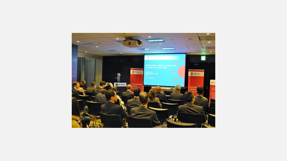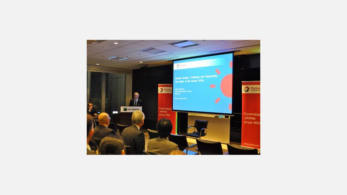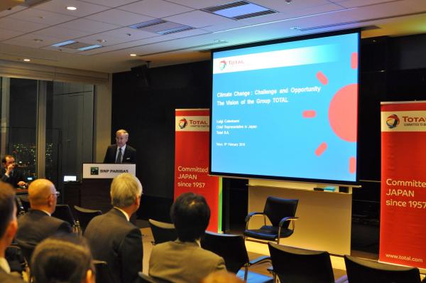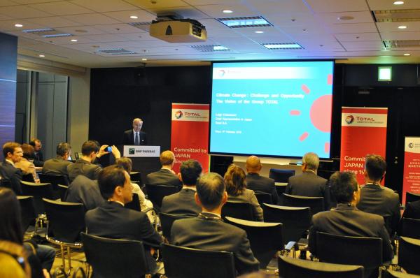 Le 9 février dernier, les superbes locaux de BNP Paribas ont accueilli une conférence exceptionnelle de la CCI France Japon sur le sujet du changement climatique. Particulièrement d’actualité, la thématique avait attiré plus de 70 personnes pour écouter le point de vue de Total en la personne de Luigi Colantuoni, Représentant du Groupe Total pour le Japon.
