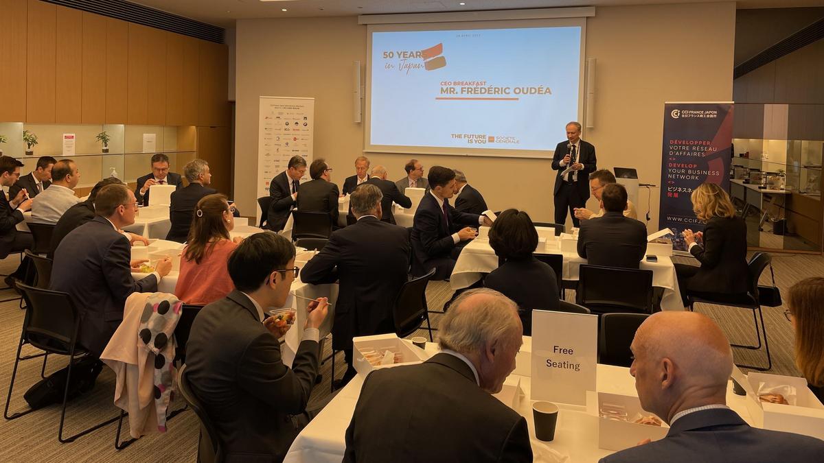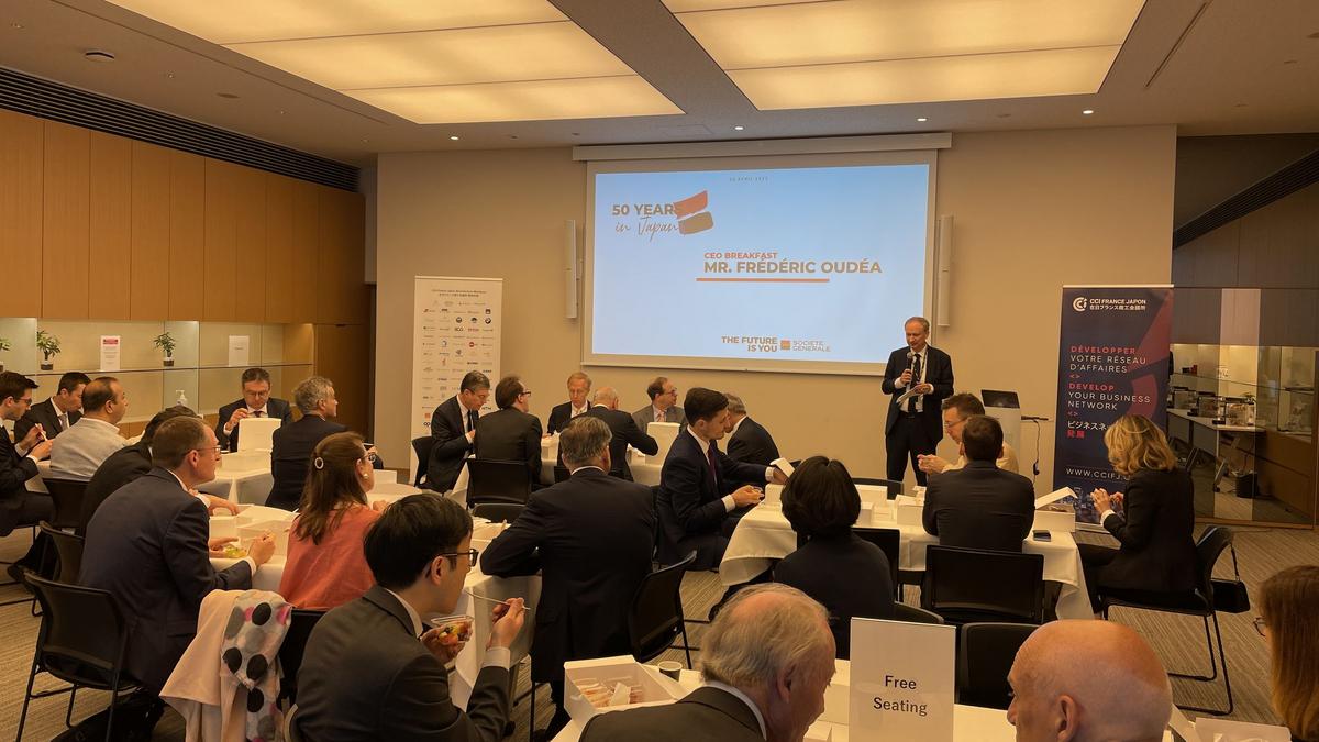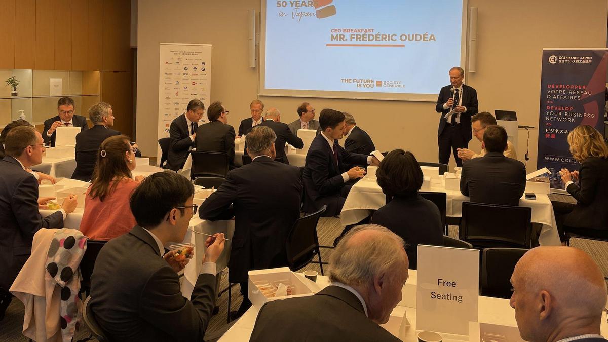 The French Chamber of Commerce and Industry in Japan held an exclusive CEO networking breakfast event for its Benefactor members with Mr. Frédéric Oudéa, the CEO of Societe Generale, on May 5, 2023. The event was attended by 29 C-level executives and General Managers from various Benefactor member companies of the Chamber.