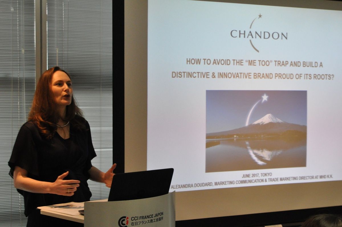 Chaired by Philippe Jardin, the French Chamber’s Marketing and Retail Committee welcomed on June 22 Alexandra Lovato-Doudard, Marketing, Communication & Trade Marketing Director at Moët Hennessy Diageo Japan. Alexandra gave a talk about how to build a unique brand and avoid falling into the me-too trap, taking the example of Chandon.