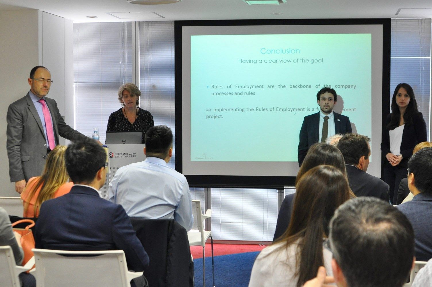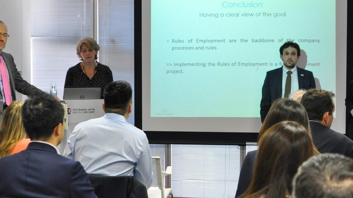 Le 23 mai dernier, le Comité RH de la CCI France Japon, présidé par Tamie Nakayama, abordait un sujet particulièrement sensible de la gestion des RH : le règlement intérieur (RI). Pour éclaircir l’aspect légal, le Comité avait fait appel à Jean-Denis Marx, associé chez Baker & McKenzie. Il avait également invité Pierre Fabre, en la personne de Yacine Dhaini, CFO, et Aline Perreu, HR Manager, afin d’apporter un témoignage d’entreprise.