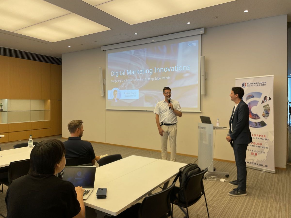 In today's rapidly evolving digital landscape, staying ahead of the curve is essential for businesses to thrive. On September 11th 2023, The French Chamber of Commerce and Industry in Japan, was delighted to host at our Espace, "Digital Marketing Trends and Innovations" presented byFrederic Peyrot, Founder & CEO of Altera. This event introduced our participants tothe most prominent digital marketing trends that are shaping the future of businesses today. Bringing light to these trends is essential, knowing how much impact they could have on enhancing brand visibility, engagement with target audiences, and the drive of business growth.