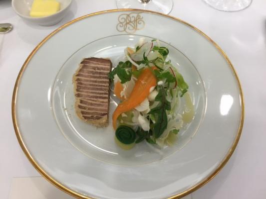 La soirée s’est ensuite poursuivie avec un dîner gastronomique préparé par le Chef M. Daitô du restaurant d’Osaka « L’ESSENTIEL » et une dégustation de 6 cuvées de Champagne de petits producteurs sélectionnés et présentés par M. Baronnet de la société AOC FRANCE. Pour souligner le raffinement du repas, le service de table historique du consulat a été utilisé et une décoration florale ainsi que des interludes de violon sont venus agrémenter la soirée.