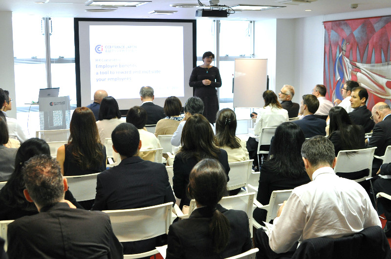 Vendredi 14 octobre le comité Ressources Humaines de la CCI France Japon et sa nouvelle présidente, Hélène Burger recevaient Laurent Gachet CEO d’Edenred Japan et Takumi Suzuki Head of Corporates of Axa Life Insurance autour d’une conférence sur le sujet des avantages accordés aux employés.