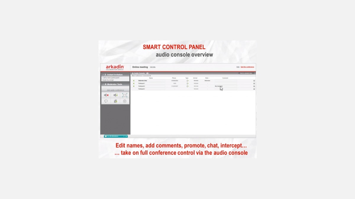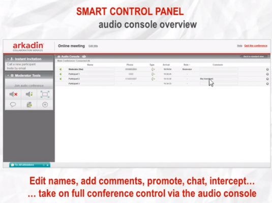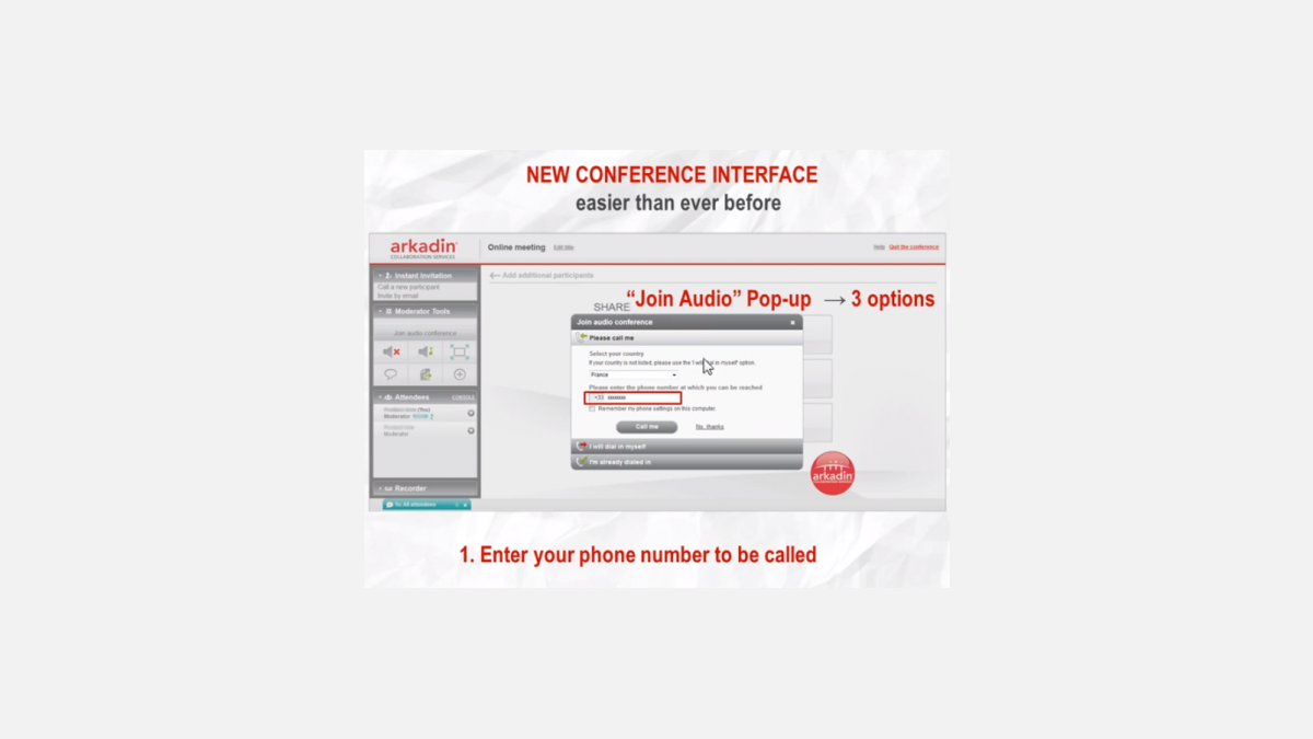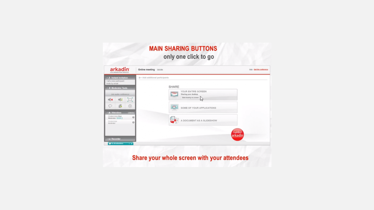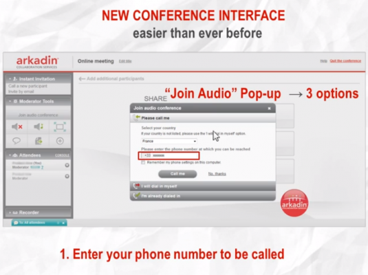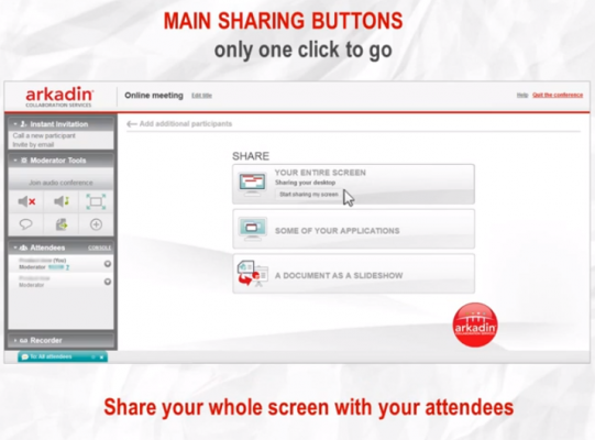 Arkadin est aujourd’hui l'un des fournisseurs de services de collaboration les plus importants au monde. La société propose une gamme complète de solutions de communications unifiées et de conférence audio, web et vidéo à distance, indispensable dans une économie ultra-connectée. « ArkadinAnywhere » est l’un de ces services de web conferencing. Conçu en France et adopté par des clients dans plus de 30 pays, ce produit se caractérise par sa simplicité et sa facilité de déploiement, avec un minimum de formation. « Nous avons travaillé à développer une solution simple et tout-en-un, qui garantit des communications mobiles et de vidéo-conférence abordables, sûres et pratiques », explique Shogo Suzuki, Vice-Président Sales & Marketing. De là vient son nom, « ArkadinAnywhere ». Les options ont volontairement été réduites à l’essentiel, tout en conservant un haut niveau de performance. En effet, de nombreuses fonctionnalités permettent de personnaliser chaque appel. Par exemple, les participants peuvent choisir le degré de partage de leurs informations (simple document, application, écran complet), mettre des lignes en silencieux ou ajouter des personnes en un seul clic.
