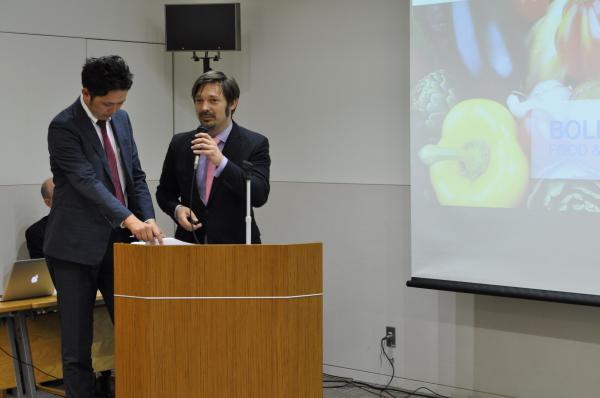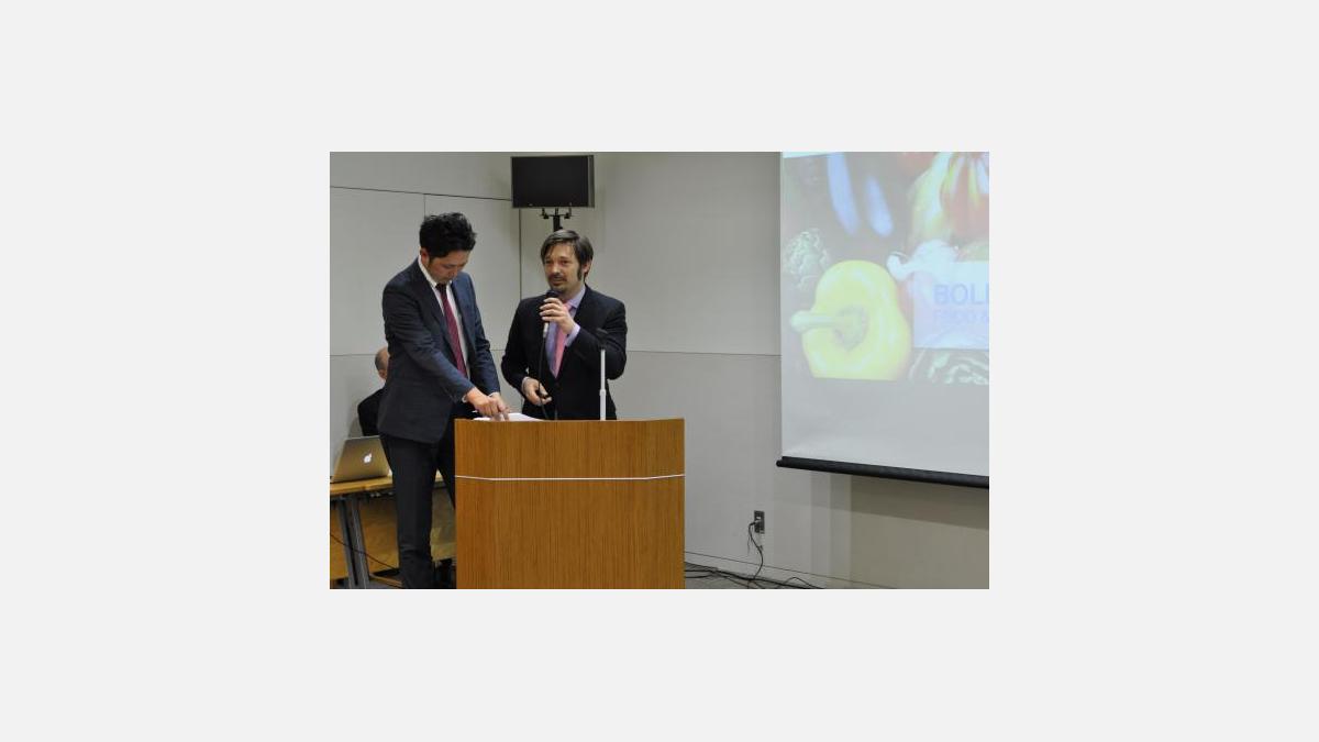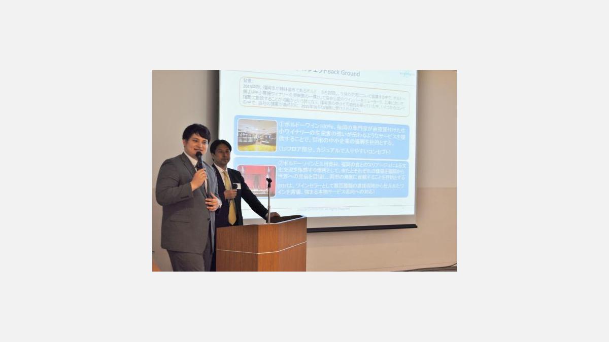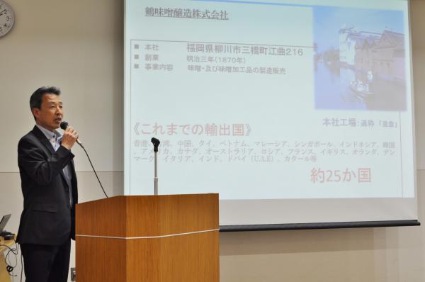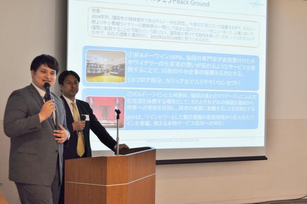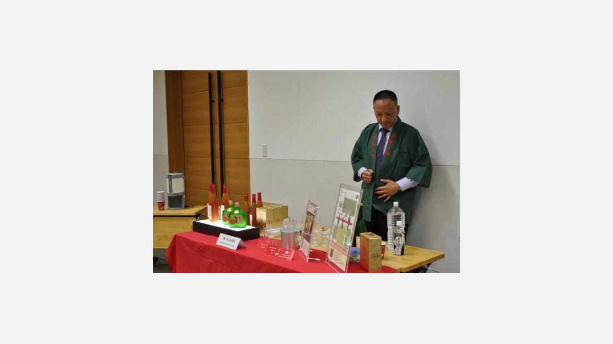 M. Wataru Ishibashi (Ishibashiya Co., Ltd., Président), et M. Osamu Maehara (Tsurumiso Jyozou Co., Ltd., General Manager), respectivement Président et Vice-Président de la Fukuoka Food Business Association, sur le thème de « Kyushu Food to the World » ;