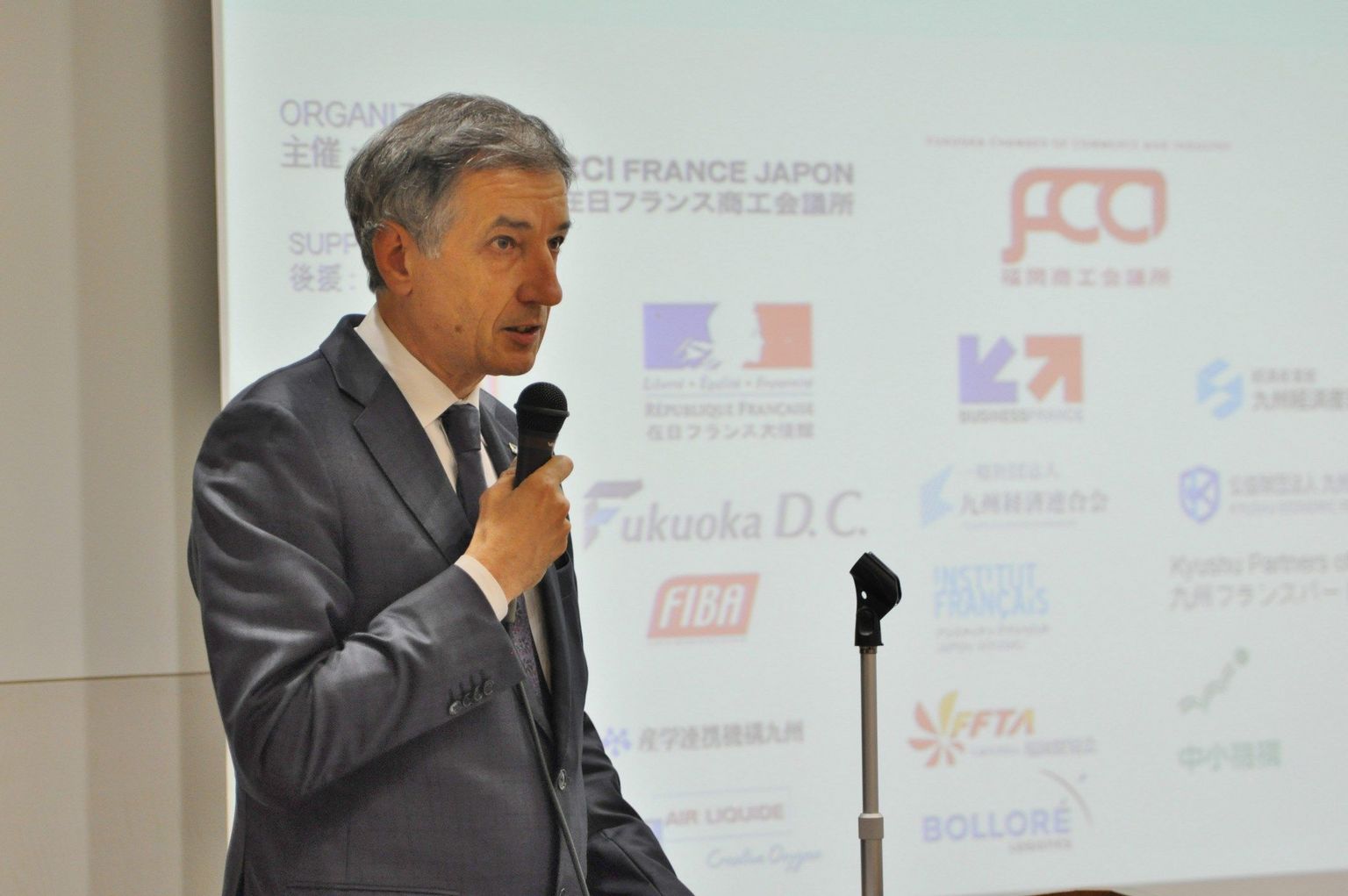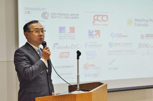 Après les discours d’introduction de M. Bernard Delmas, Président de la CCI France Japon, de M. Seiji Isoyama, Président de la Chambre de Commerce de Fukuoka et du Fukuoka Convention & Visitors Bureau et du Kyushu France Partners Club, de M. Thierry Dana, Ambassadeur de France au Japon, de M. Fabien Robert, Adjoint au maire de Bordeaux en charge de la culture et du patrimoine, et de Soichiro Takashima, Maire de Fukuoka, les intervenants ont pris la parole.