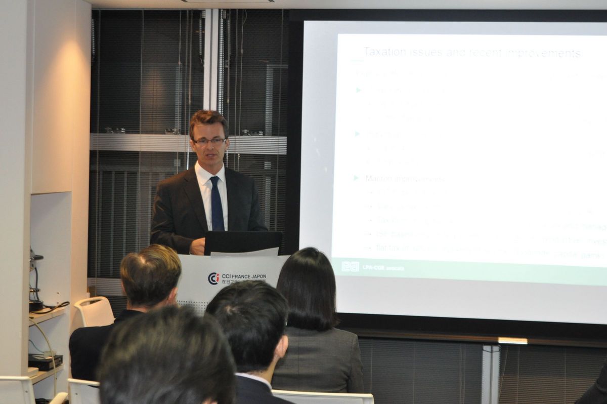 On November 9, 2017, the CCI France Japon in Tokyo welcomed Raphaël Chantelot and Emmanuel Tricot, Partners, and Catherine Gaillarde and Airi Tozaki, Associates, from the Paris Law Office LPA-CGR avocats (formerly named Lefèvre Pelletier & Associés) – the only French law firm established in Japan – for their conference on the French regulations impacting the investments and businesses of Japanese and foreign companies in France.