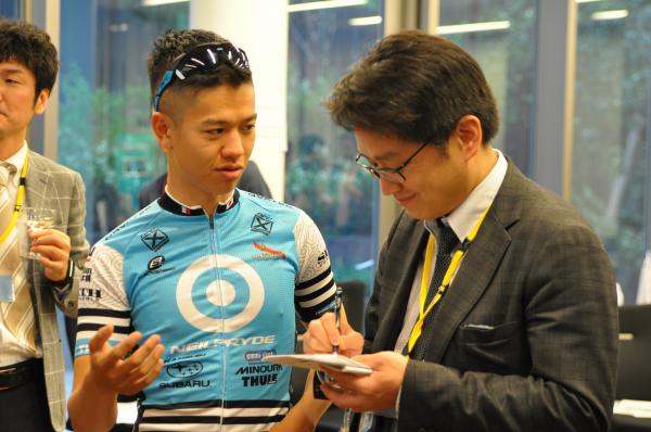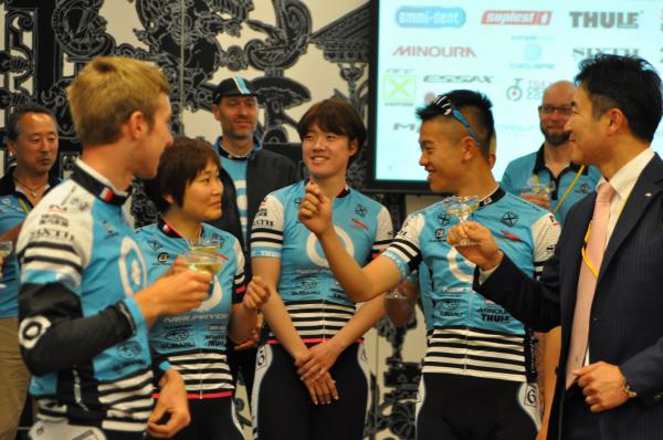 Stephan Forest a commencé par expliquer la stratégie de 2016. Contrairement à l’année précédente, l’équipe va accueillir davantage de coureurs français expérimentés pour cette nouvelle saison. Ils viendront partager leur expérience professionnelle des courses avec les coureurs japonais plus jeunes. En effet, le cyclisme est un sport relativement neuf au Japon, et où le nombre de courses professionnelles est limité en comparaison avec la France. Le management de la NEILPRYDE – NANSHIN SUBARU Cycling Team a donc décidé de constituer un corps français pour donner une direction plus claire à l’équipe. Les résultats sont déjà largement positifs sur la stratégie de course. Pour l’équipe féminine, le management a misé sur l’internationalisation avec une coureuse Canadienne, une Coréenne en plus de la Française et des Japonaises déjà présentes. Tous les coureurs ont été présentés et ont exprimé leur sentiment sur la prochaine saison.