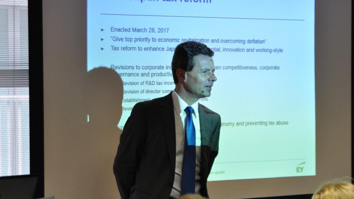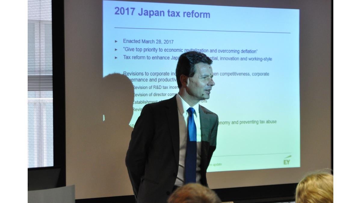On May 18, 2017, the Tax and Regulations Committee, chaired by Philippe Dalpayrat, welcomed Hans-Peter Musahl, Partner at Ernst & Young Tax Co. and Juergen Dumont, Manager at Ernst & Young Tax Co. to the French Chamber for a conference on the 2017 Japan tax reform. The very popular seminar welcomed over forty-five participants, and introduced the enacted reform and provided insights into major amendments, affecting both individuals and corporations.