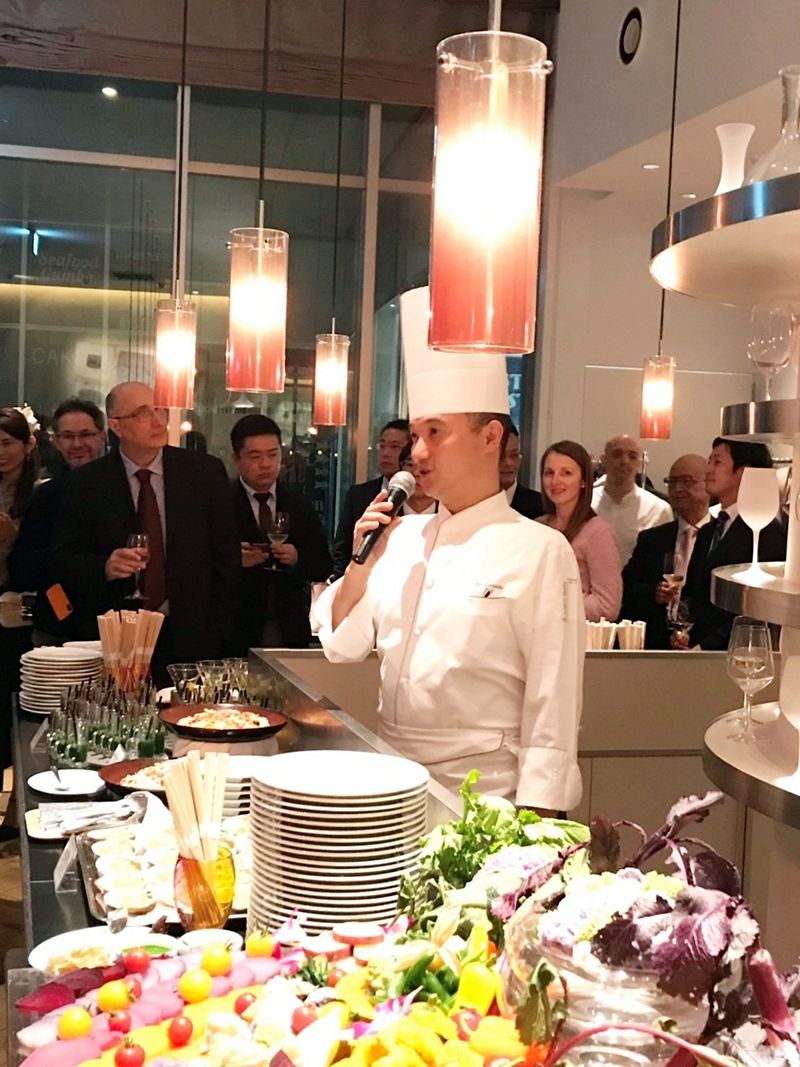 Dans ce cadre magnifique, 60 convives ont pu déguster un buffet, savoureux et coloré, préparé spécialement pour l’occasion par le Chef Karato. La soirée a par ailleurs commencé par une présentation du Chef à propos du buffet et du concept « Lumière » du restaurant. Foie gras, assiette de légumes frais, vins et fontaine de chocolat, rien n’a été laissé au hasard afin de célébrer comme il se doit ce début d’année 2019. Les invités ont pu ensuite participer à un quizz culinaire sur les spécialités des régions françaises et remporter des lots pour les meilleurs d’entre eux.