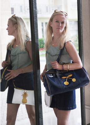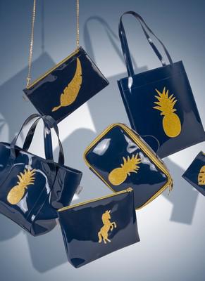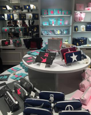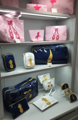 Inspirée par Hello Kitty et Snoopy, personnages fantastiques marquants de son enfance, la créatrice décline une large gamme d’accessoires : cabas, étuis pour ordinateur portable, protège-passeports, agendas scolaires, trousse de maquillage…dans une palette de près de 24 couleurs. Parmi les couleurs phares : marine & doré ; anthracite & cuivre ; marine & argent ; anthracite, prune & doré ; gris & blanc pailleté ou encore rose & rose pailleté.