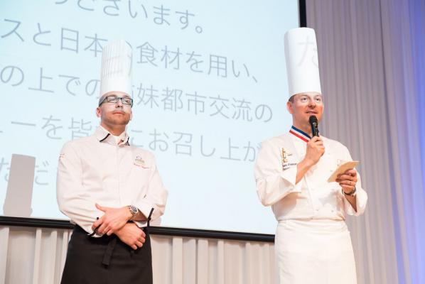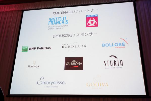 Cette année, la Chambre s’est associée à la ville de Bordeaux afin de faire découvrir, ou redécouvrir, l’incroyable patrimoine culturel, artistique et gastronomique, de cette région. Une délégation composée de M. Fabien Robert, Adjoint au Maire de Bordeaux chargé de la culture et du patrimoine, Mme Sophie Senghor, directrice générale adjointe des relations internationales à la ville de Bordeaux et M. Stéphan Delaux, Adjoint au Maire de Bordeaux en charge du tourisme, de la promotion touristique du territoire, de l'animation de la ville et de la vie fluviale, avait fait le voyage tout spécialement depuis la France. Ils se sont ajoutés à la liste des personnalités franco-japonaises qui ont honoré le Gala de leur présence : M. Bernard Delmas, Président de la CCI France Japon, M. Thierry Dana, Ambassadeur de France au Japon, M. Soichiro Takashima, Maire de la ville de Fukuoka, M. Charles-Henri Brosseau, Consul général de France, M. Yasushi Furukawa, Député, Mme Evelyne Inuzuka, Conseillère Consulaire du Japon, M. Kozo Yamamoto, Député, Mme Francine Méoule, Directrice de l’Institut français du Japon - Kyushu et M. Seitaro Hattori, Vice-gouverneur de la préfecture de Fukuoka.