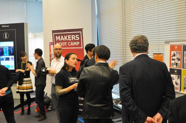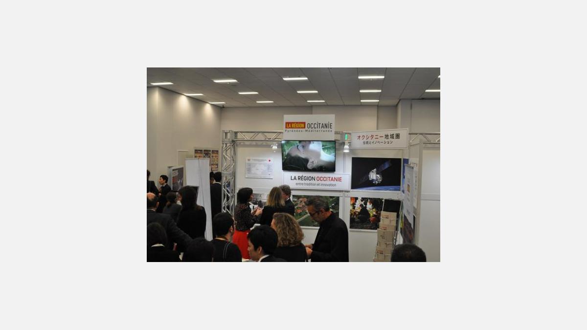 Pour illustrer cette Innovation Franco Japonaise, plus d’une vingtaine d’entreprises et Start-Up présentaient aussi leurs activités sur des stands dans la grande salle d’Exposition. C’est ainsi que nous avons eu le plaisir de découvrir le potentiel incroyable de l’aluminium sur le stand de Toyo Aluminium, découvrir les nouvelles utilisations de la réalité virtuel dans l’industrie avec Dassault Système ou encore un panneau d’affichage multimédia et ses fonctions d’alertes aux séismes ou tsunamis signé MCDecaux.