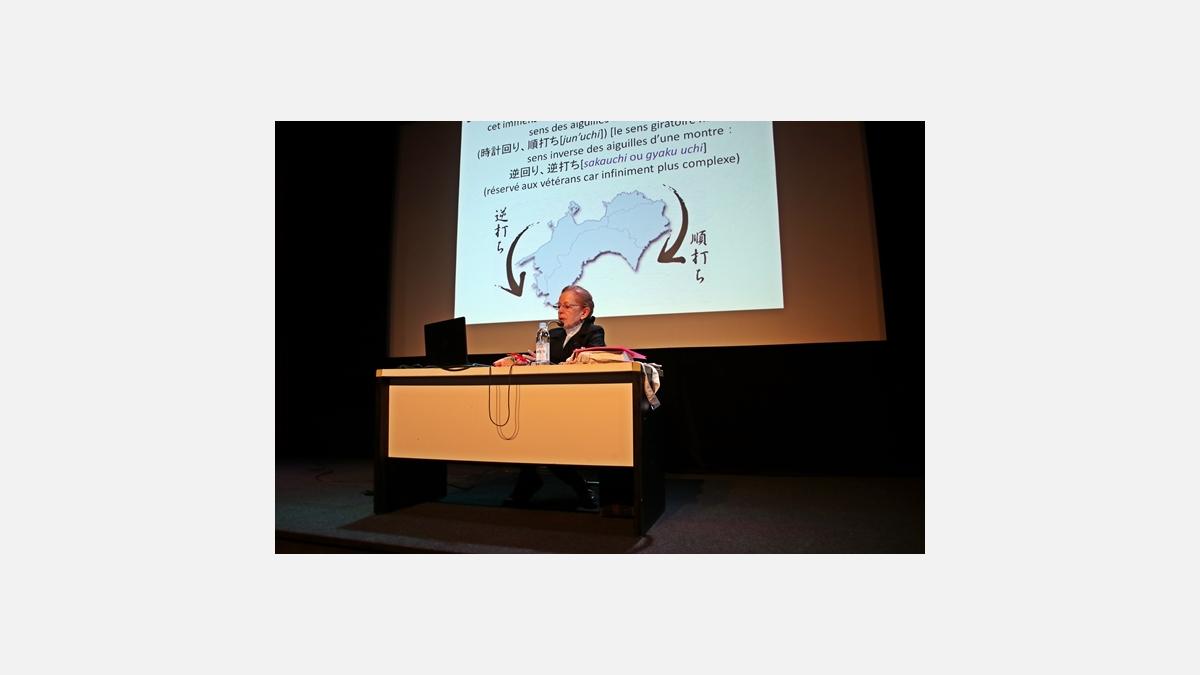 Afin de mieux comprendre les tenants et aboutissants de ce pèlerinage, Muriel Jolivet a commencé par présenter l’île assez méconnue qu’est le Shikoku, ainsi que le bouddhisme ésotérique Shingon qui est à l’origine du pèlerinage. Si ce dernier attire un nombre important de pèlerins chaque année, la complexité du parcours requiert un minimum de préparation, d’autant plus que les aptitudes physiques et les limites des pèlerins différent autant que leurs objectifs. A pied le tour complet de l’île prend entre 40 et 50 jours, mais les pèlerins ont la possibilité d’emprunter quelques moyens de locomotion comme le train, le bus ou la voiture qui ne les dispensera pas pour autant de longues marches et de montées. Pour Mme Jolivet, peu importe le moyen, l’essentiel est le voyage spirituel qui est entrepris, que le pèlerin soit croyant ou athée.