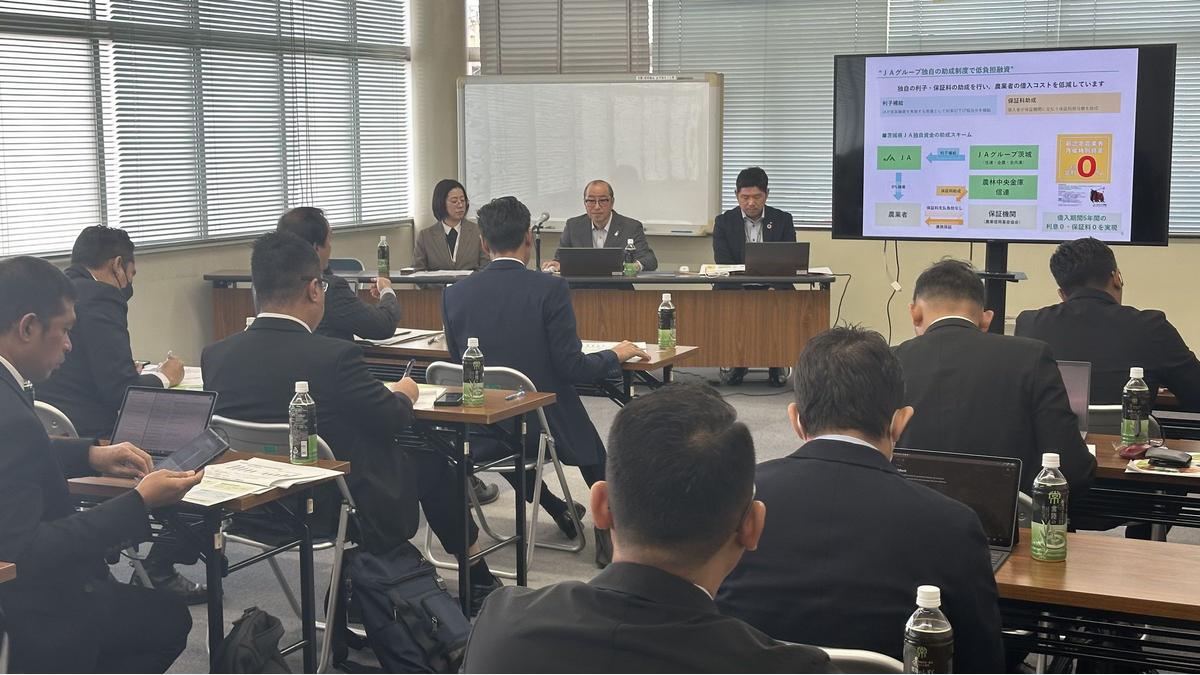 La délégation a d’abord rencontré la JA Bank Ibaraki et l’Union centrale préfectorale JA d’Ibaraki, parties intégrantes de JA (Japan Agricultural Cooperatives), découvrant comment les services financiers, la gestion coopérative et les centres de soutien agricole travaillent main dans la main. Les présentations ont mis en avant le financement des agriculteurs, les réseaux de crédit régionaux et le rôle évolutif de JA dans le renforcement de la résilience économique locale.