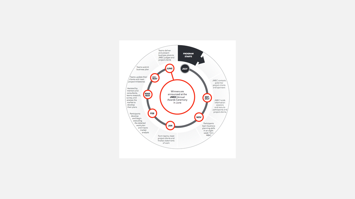 Ce programme a été fondé en 1993 par plusieurs Chambres de commerce étrangères présentes au Japon. Aujourd’hui soutenu par 18 Chambres de commerce, dont la CCI France Japon, le JMEC, qui a décerné près de 1 200 diplômes, organise cette année sa 24è édition.