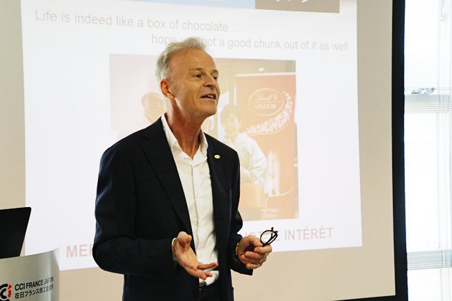 The French Chamber welcomed on Wednesday, July 25, Andre Zimmermann, Representative Director of Lindt & Sprüngli Japan, for a seminar of the Marketing and Retail Committee. On this occasion, Andre Zimmermann shared his experience inside the famous chocolate company, from its entry into the Japanese market to their projects for the future.