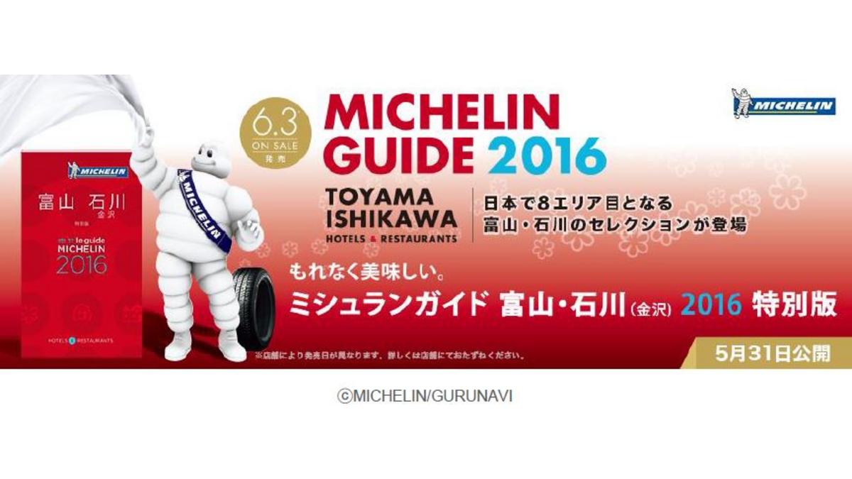 Michelin a annoncé la publication de son nouveau guide : le Guide Michelin Toyama Ishikawa (Kanazawa) 2016. Il présente les meilleurs hôtels, ryokans, et restaurants dans les Préfectures de Toyama et Ishikawa. Publié en japonais, il sera disponible dans les librairies de l’archipel à partir du vendredi 3 juin (date de disponibilité variable selon les régions et les magasins). La sélection est d’ores et déjà disponible sous format digital sur le site officiel Club MICHELIN, accessible sur abonnement.