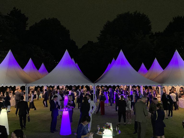 Airstar Japon est honoré d'avoir été choisi par l'ambassade britannique à Tokyo pour cet événement historique et d'avoir apporté son expertise unique en terme de décoration et d'éclairage de l'espace.