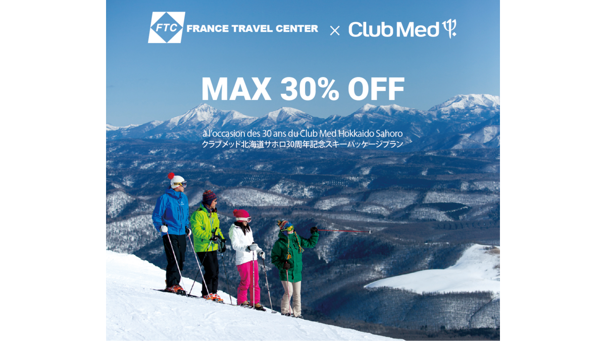 France Travel Center, agence de voyages pour loisirs et clientèle affaires, et le Club Med, premier opérateur mondial des vacances de ski en formule tout compris ont préparé conjointement une promotion exclusive ! À l’occasion des 30 ans du resort Club Med Hokkaido Sahoro, France Travel Center et le Club Med proposent des séjours avec d'importantes réductions. L’offre est destinée aux familles souhaitant partir faire du ski à Hokkaido, dans un cadre naturel et propice à la détente.