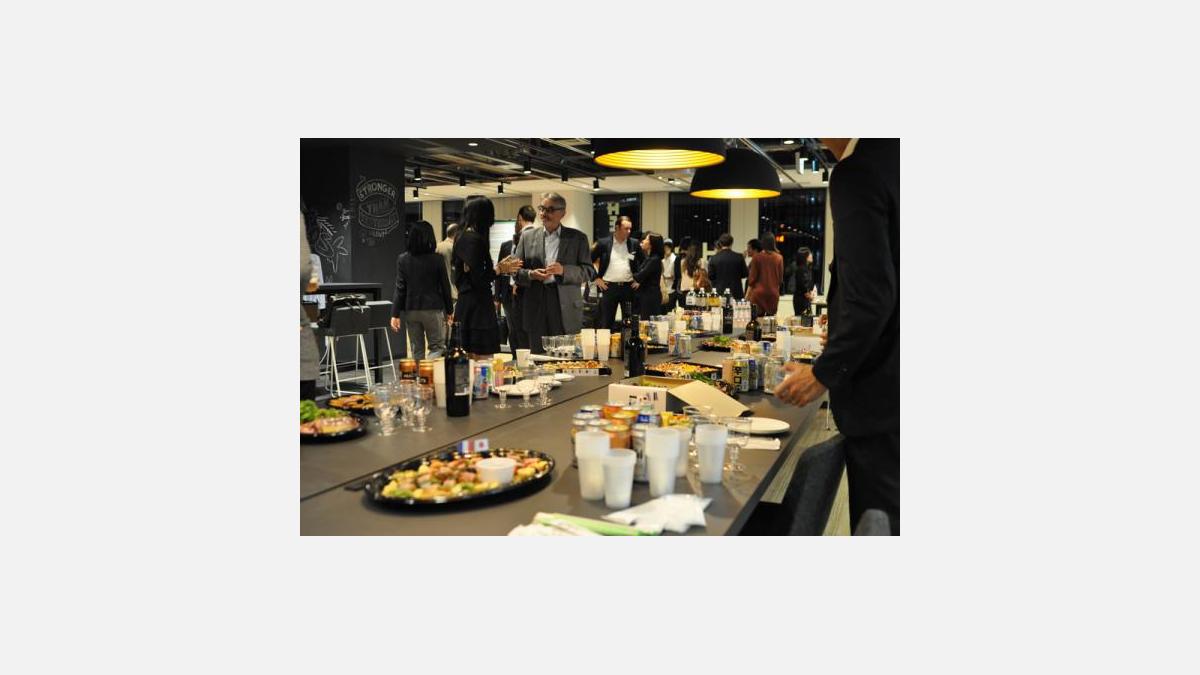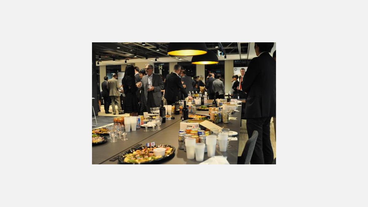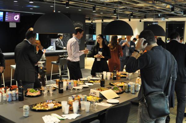 Après les démonstrations, l’ensemble de l’assistance a pu échanger et poser des questions aux trois start-ups autour d’un verre et d’un buffet dressé pour l’occasion.
