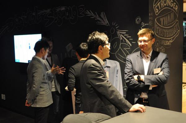 Cette partie de la soirée a également été l'occasion de découvrir trois stands, trois expériences innovantes proposées par Accenture et durant lesquelles les participants pouvaient s'initier au pouvoir du big data sur le stand Analytics, découvrir une expérience de retail digital avec une salle d’essayage digital et un kiosque digital. Le troisième stand : cyber-Sécurité, montrait une salle reliée à toutes les villes du monde « semblable à un film hollywoodien, c’est très excitant » précisait à son sujet Jean-Michel Ferrer.