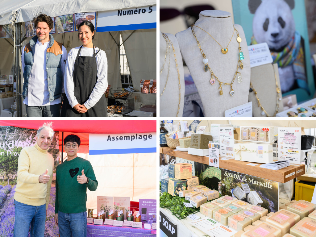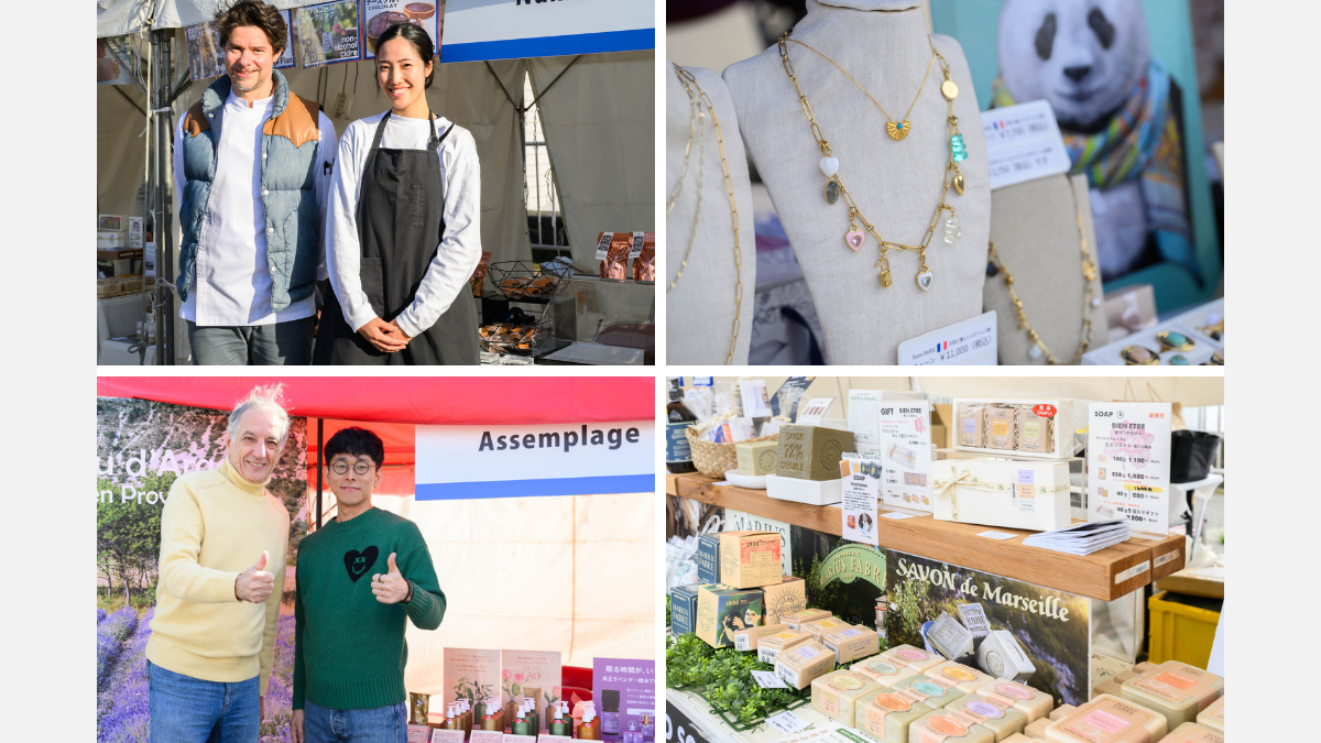Le marché proposait une sélection raffinée de mets élaborés par des chefs français, des desserts alliant influences françaises et japonaises, des vins sélectionnés avec soin, ainsi que des accessoires et des produits cosmétiques de signature française.