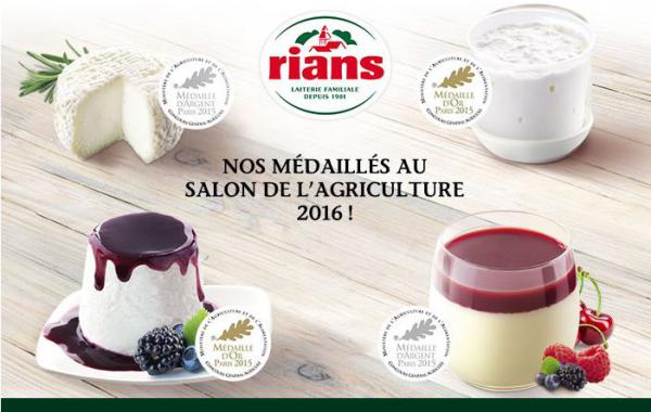 C’est avec beaucoup de fierté que Rians a annoncé que 5 de ses produits avaient récemment été récompensés à l'occasion du Concours Général Agricole, au salon de l'agriculture 2016.