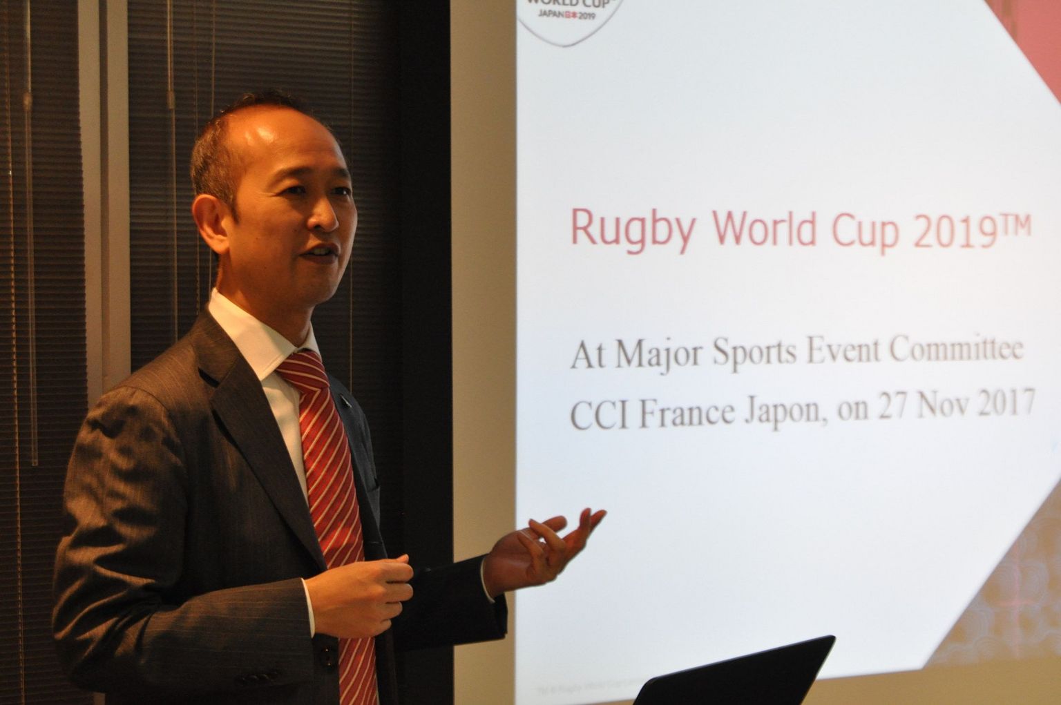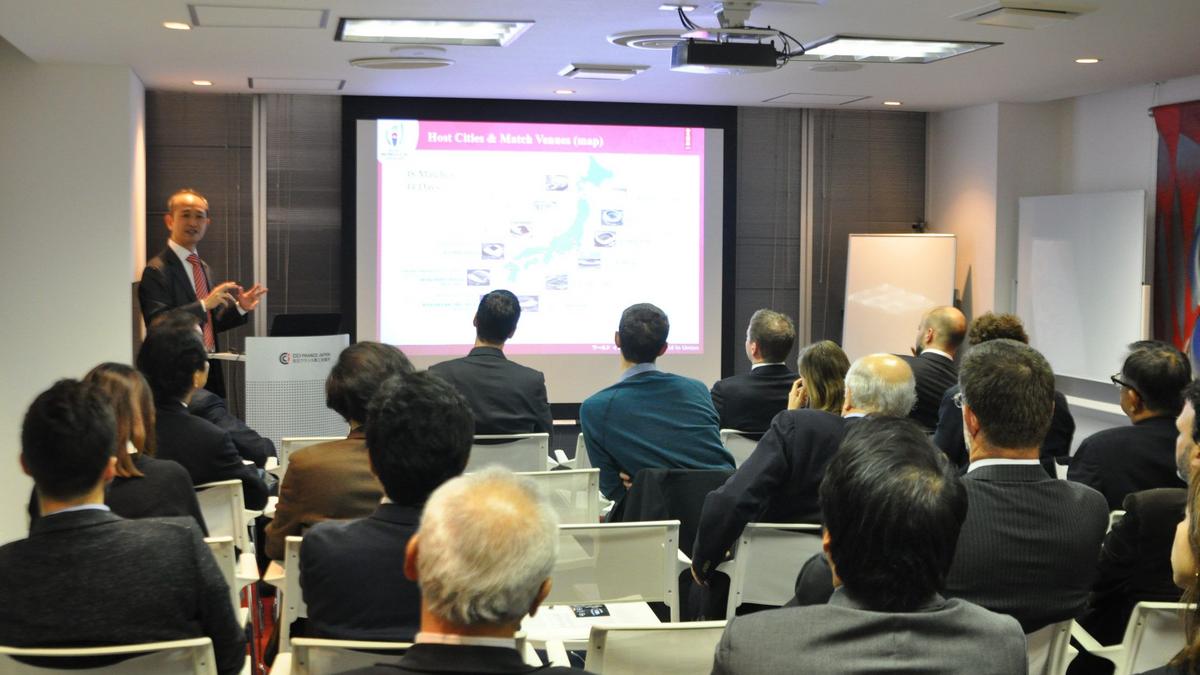 The Major Sporting Events Committee and its chairman Anthony Gourmel held a conference on November 27 about the upcoming 2019 Rugby World Cup which will be hosted in Japan. The two guest speakers were Yuji Honda, Head of Strategy & Legacy Department at the Rugby World Cup 2019 Organizing Committee, and David MacCallum, Commercial Director for Asia at STH Japan, a joint venture between JTB Corporation – the largest travel agency in Japan and one of the largest travel agencies in the world – and STH Group, a sports hospitality company established to collaborate on Japanese domestic sports hospitality projects.