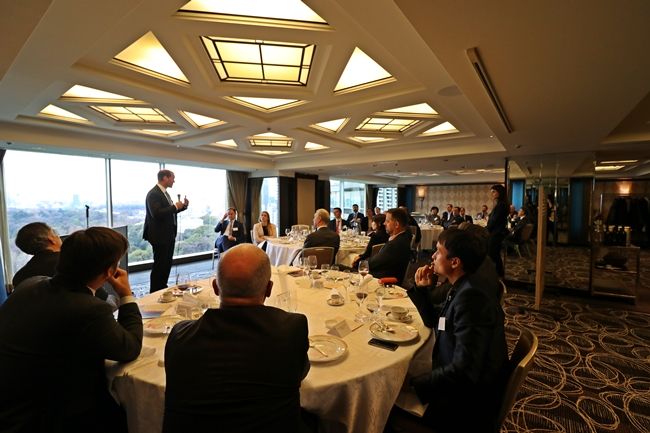 M. Weber a pris part au déjeuner en compagnie de 28 représentants d’entreprises-membres et de l’ancien président de la CCI France Japon, Bernard Delmas, avant de partager son expérience unique.