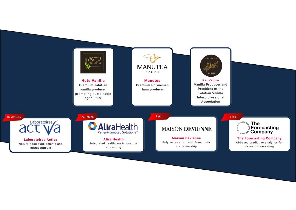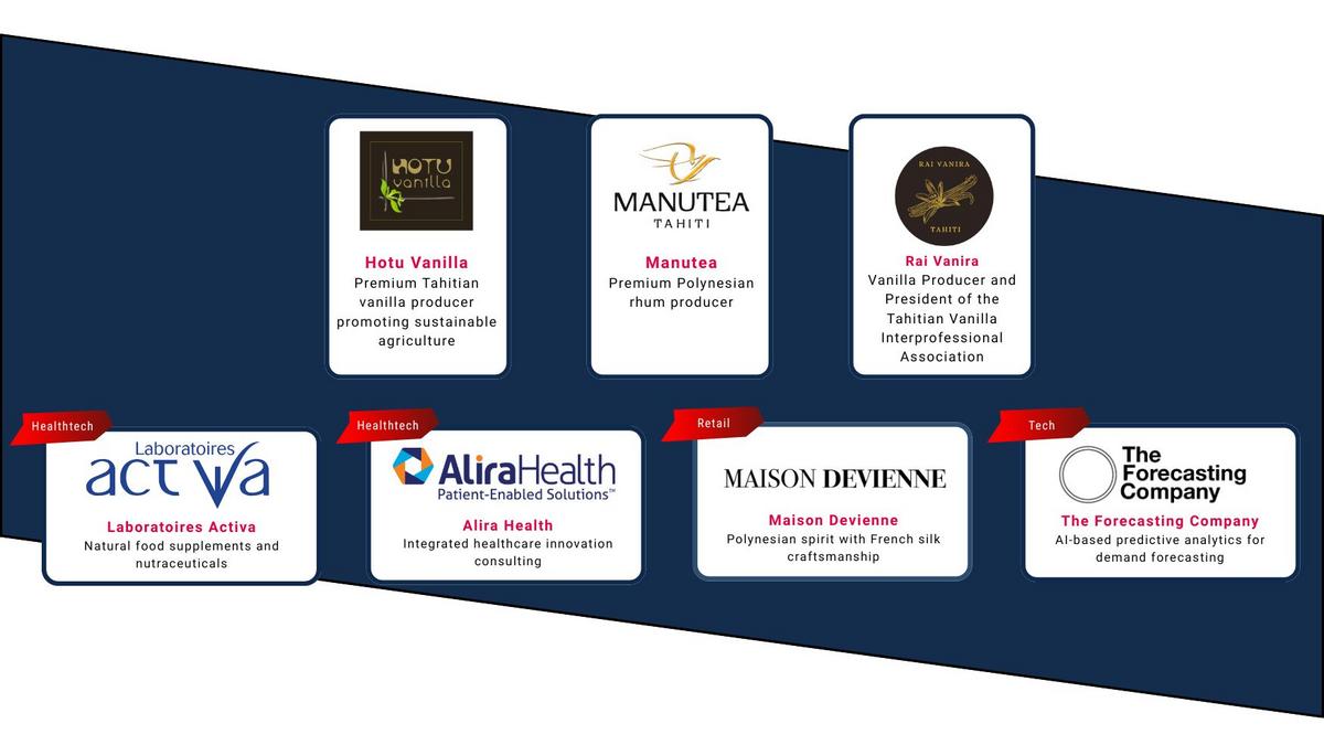 Nous adressons nos plus sincères remerciements à toutes les entreprises participantes : Hotu Vanilla, Rai Vanira, Manutea, Maison Devienne, Laboratoires Activa, Alira Health et The Forecasting Company pour leur énergie et leur engagement.