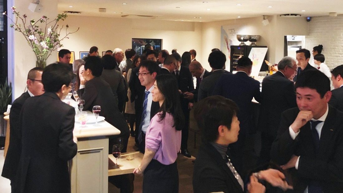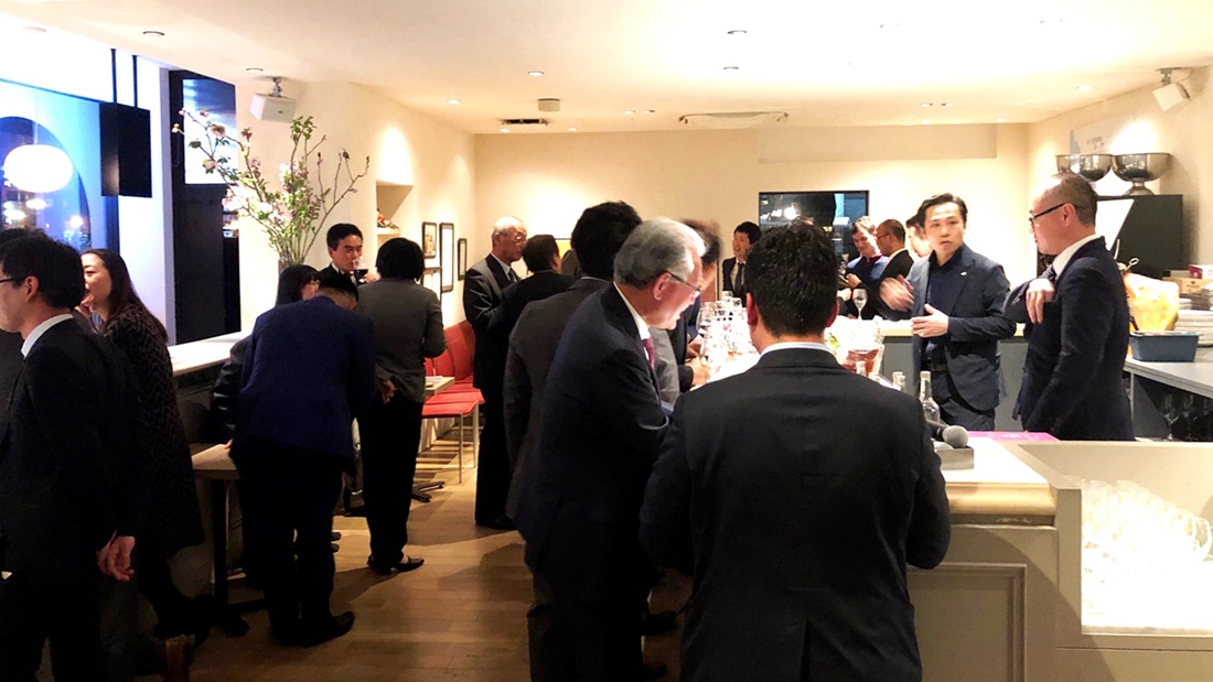 Après le kampai de Gono Koichi, Directeur du Fukuoka Convention and Visitors Bureau, la quarantaine de participants ont pu échanger allégrement autour de vins français accompagnés d’hors-d’œuvre préparés pour l’occasion.