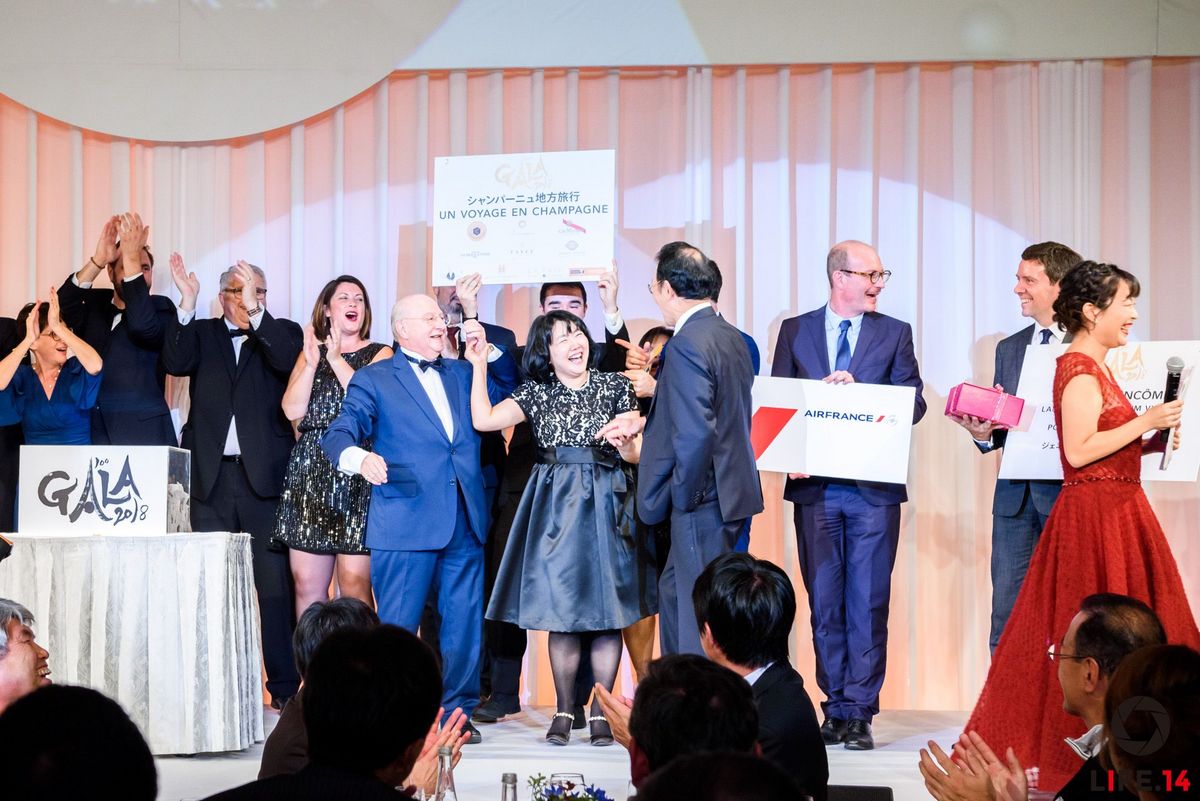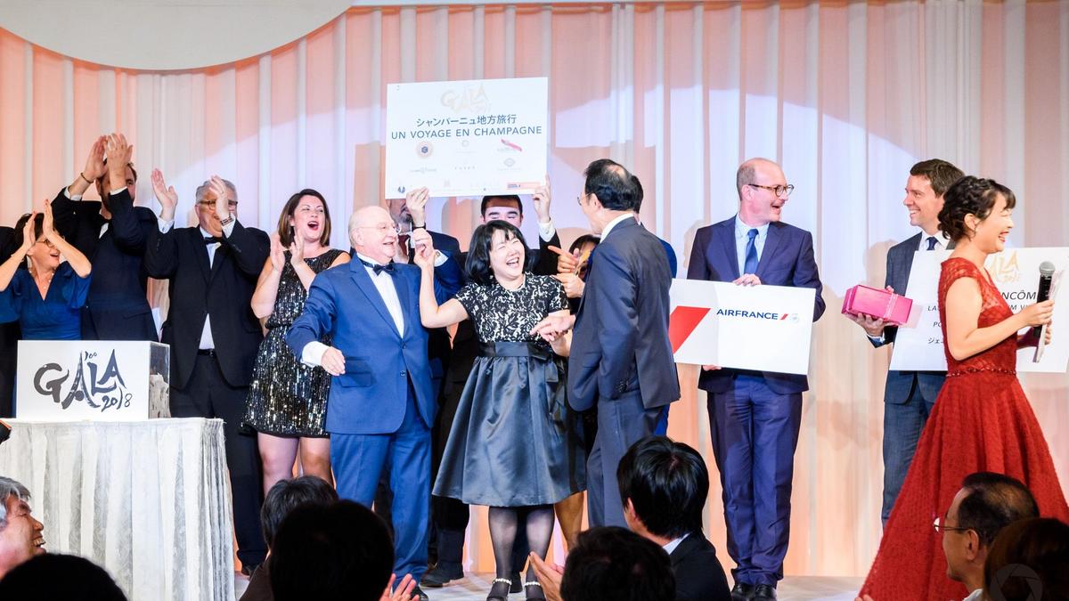 Tous ont aussi pu tester leurs connaissances de la Champagne et de la CCI France Japon lors d’un grand quiz à la suite duquel deux tables gagnantes ont pu remporter par invité une bouteille de champagne Collet. Enfin, ce n’était pas la seule occasion de remporter quelque chose ce soir-là car il était aussi possible de gagner parmi plus de 330 lots lors de la traditionnelle grande tombola. Entre autres étaient proposés un magnifique voyage en France et en Champagne comprenant deux billets aller-retour en classe Affaires Paris-Tokyo offerts par Air France, ou encore une somptueuse montre offerte par Chanel mettant à l’honneur l’esprit de la créatrice de mode la plus connue au monde.