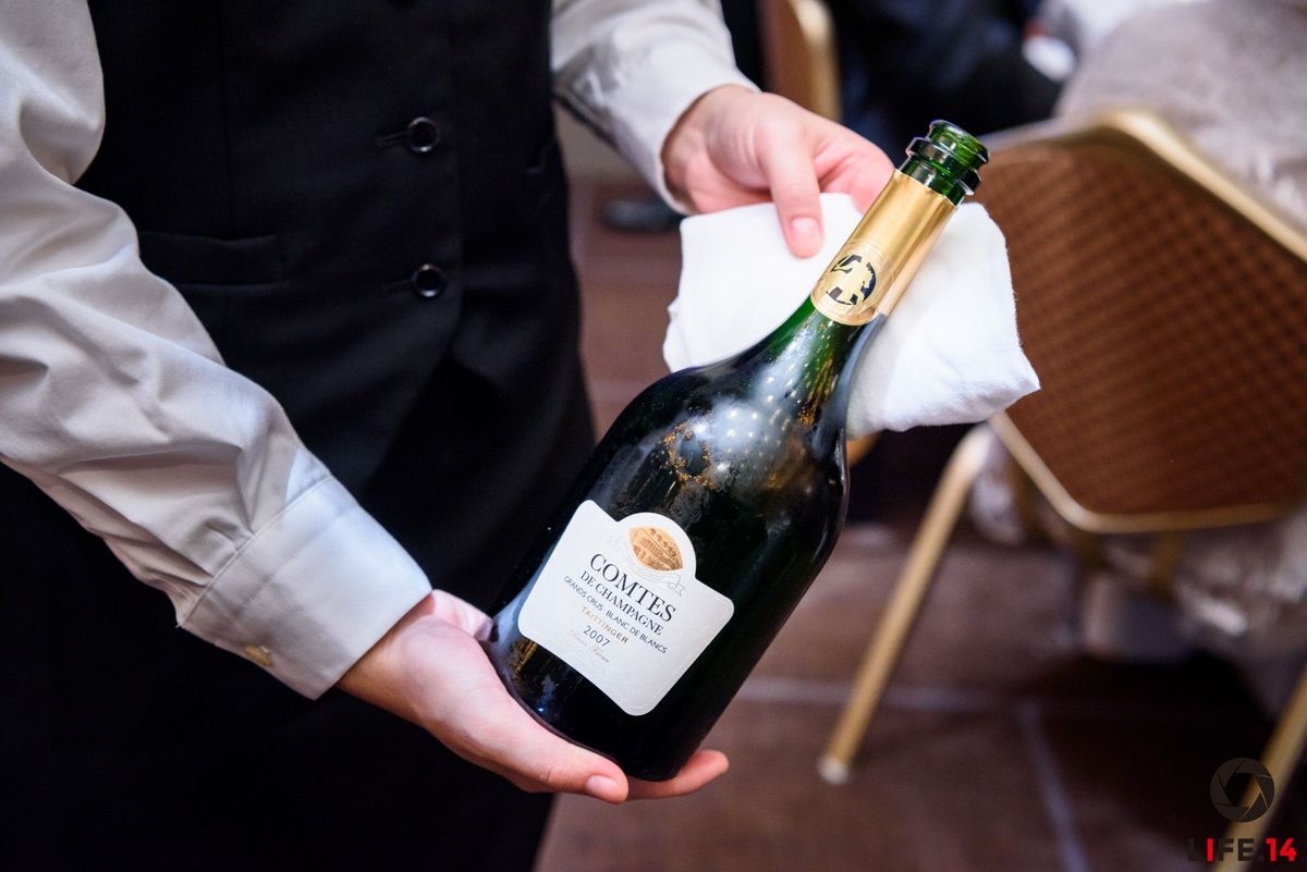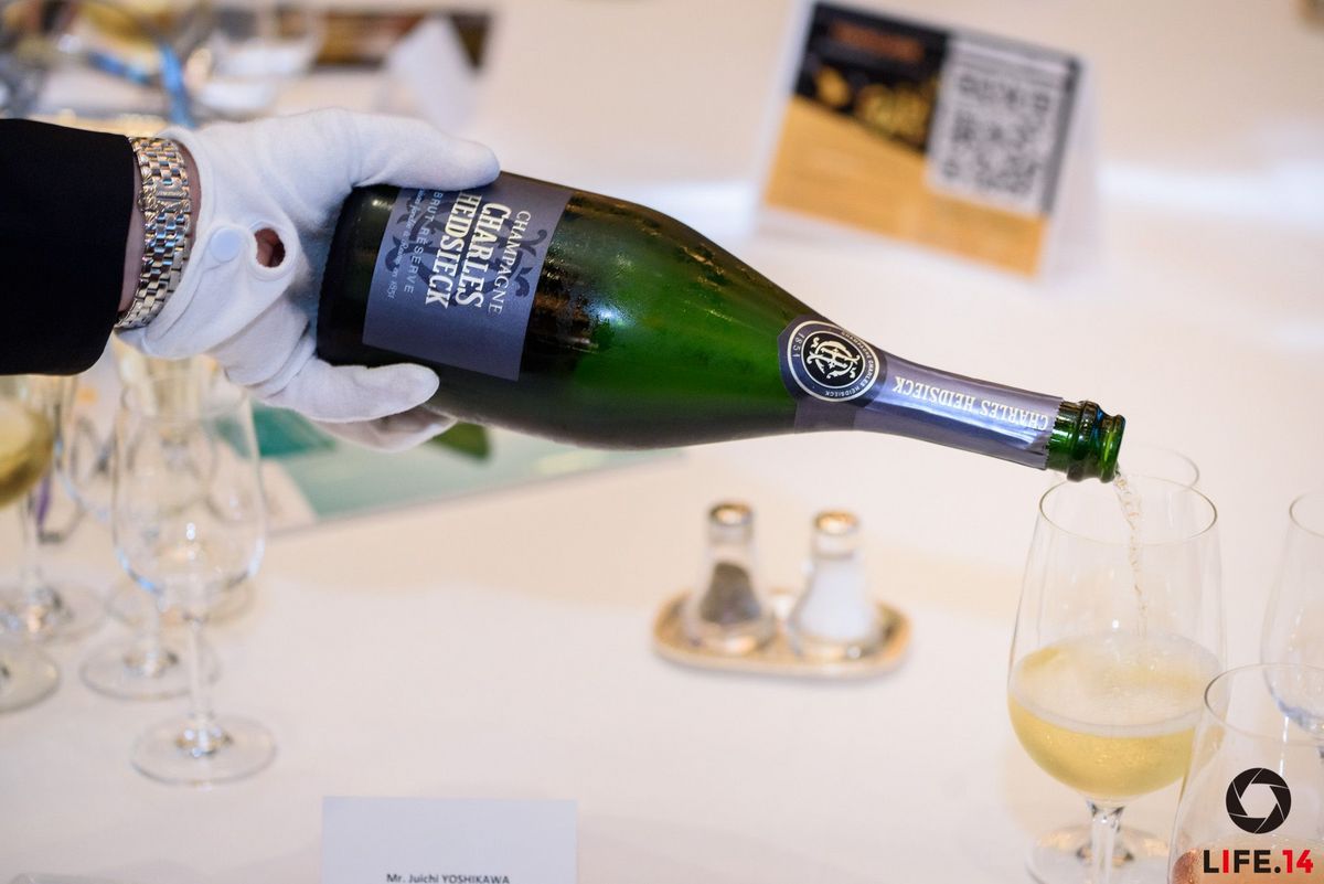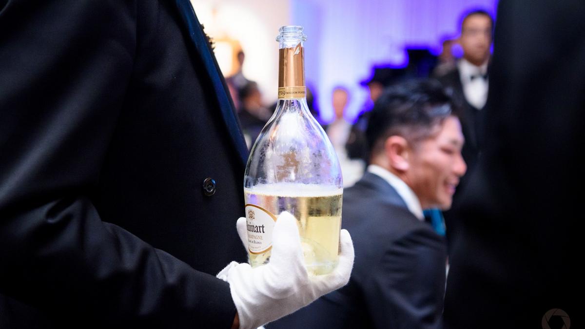 Ainsi, la carte des vins de la soirée s’est transformée pour l’occasion en une carte des champagnes aux cuvées exceptionnelles : RSRV Blanc de Blancs de la maison Mumm, Blanc de Blancs de la maison Ruinart, Cuvée Rosé de la maison Laurent-Perrier, Brut Réserve de la maison Charles Heidsieck, Cuvée Louise Nature de la maison Pommery et le Comtes de champagne blanc de blancs de la maison Taittinger ont ravi les papilles de tous.