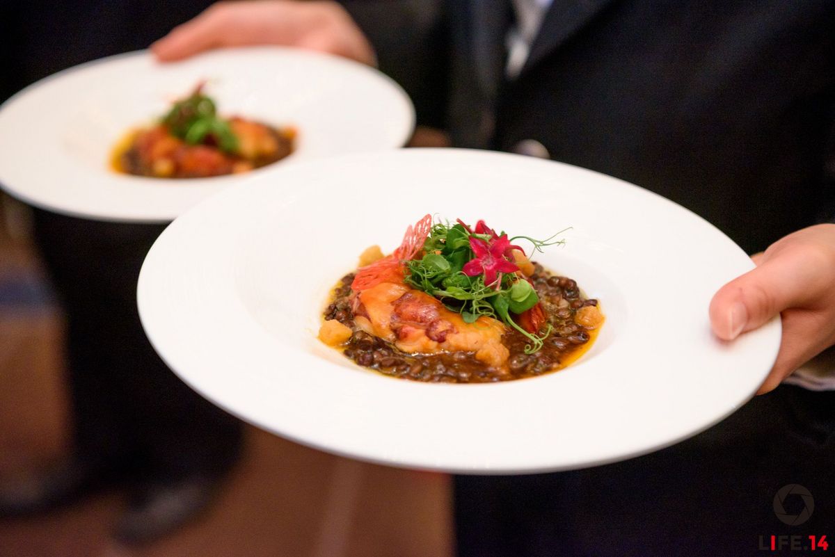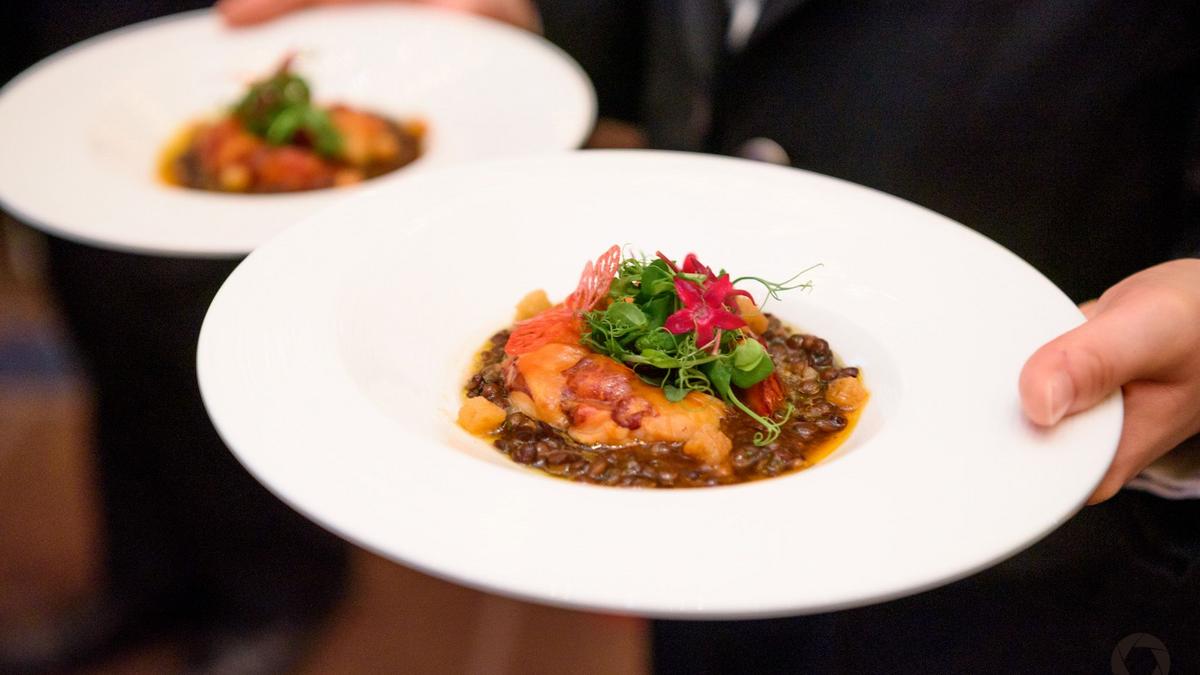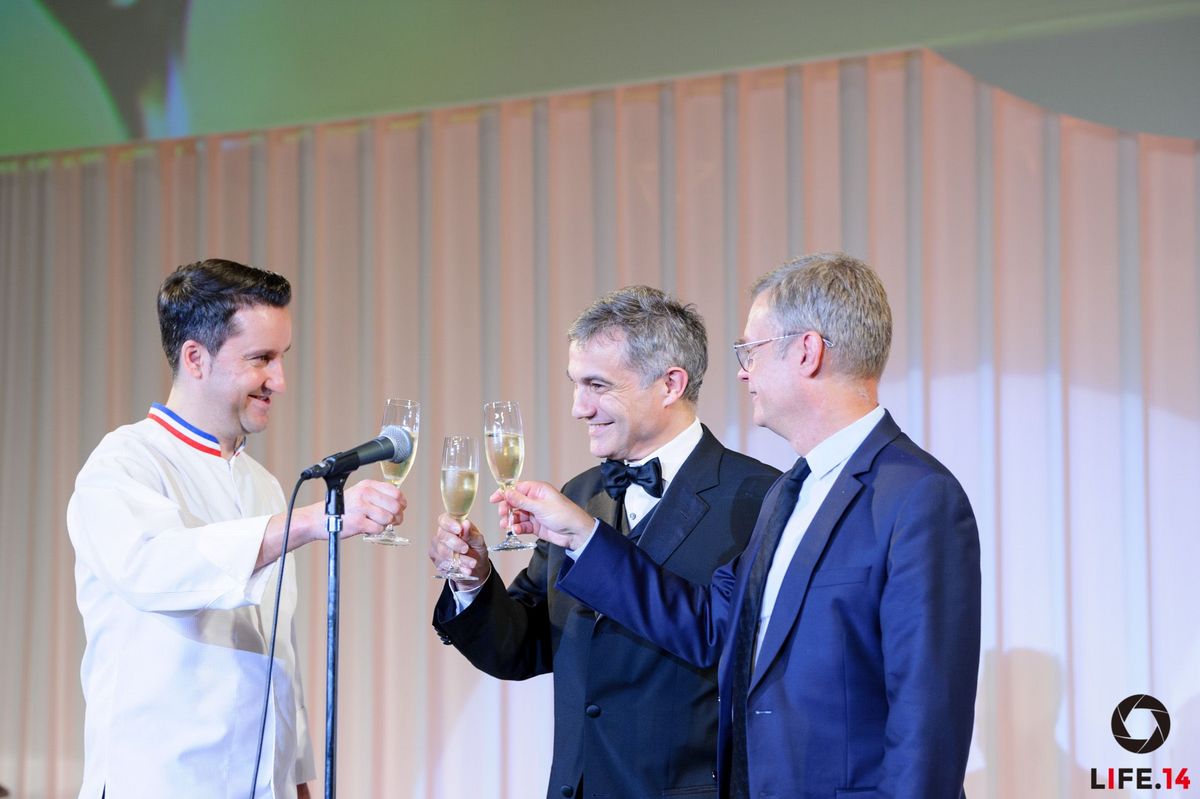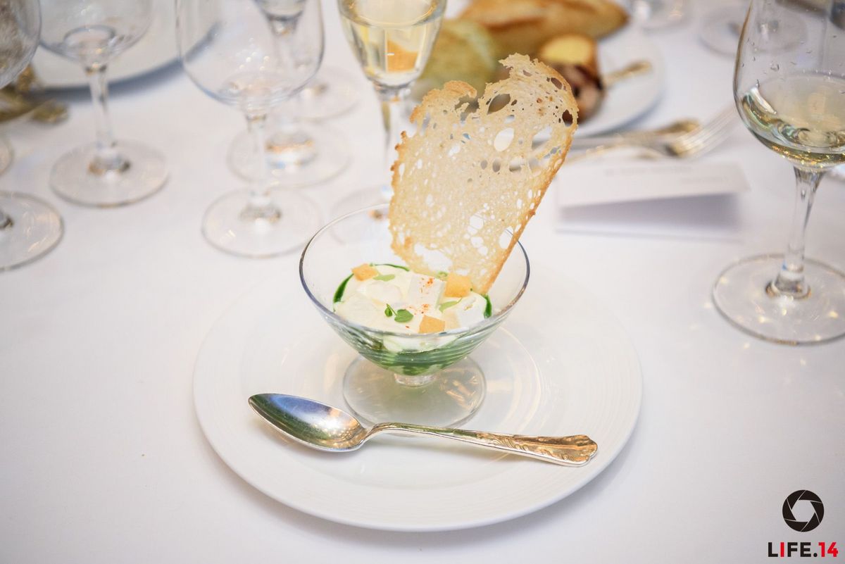 Ainsi, la carte des vins de la soirée s’est transformée pour l’occasion en une carte des champagnes aux cuvées exceptionnelles : RSRV Blanc de Blancs de la maison Mumm, Blanc de Blancs de la maison Ruinart, Cuvée Rosé de la maison Laurent-Perrier, Brut Réserve de la maison Charles Heidsieck, Cuvée Louise Nature de la maison Pommery et le Comtes de champagne blanc de blancs de la maison Taittinger ont ravi les papilles de tous.