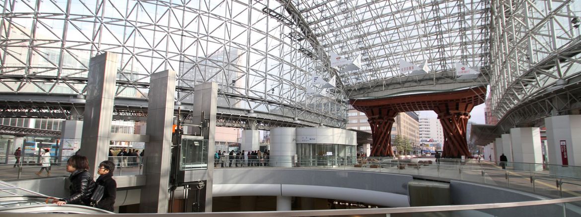 Entre mer et montagnes, cette ville à taille humaine a été épargnée par les bombardements de la Seconde Guerre mondiale. Le mélange de tradition et de modernité se voit dès la sortie de la gare. On sort mais on est encore à l’intérieur. À l’intérieur d’un gigantesque dôme de bienvenue en verre, que l’on peut quitter en franchissant une porte traditionnelle, aux deux tambours de nô.