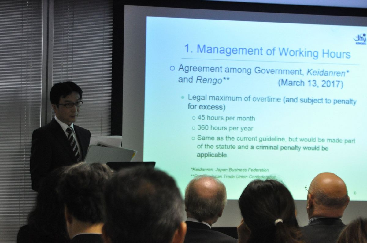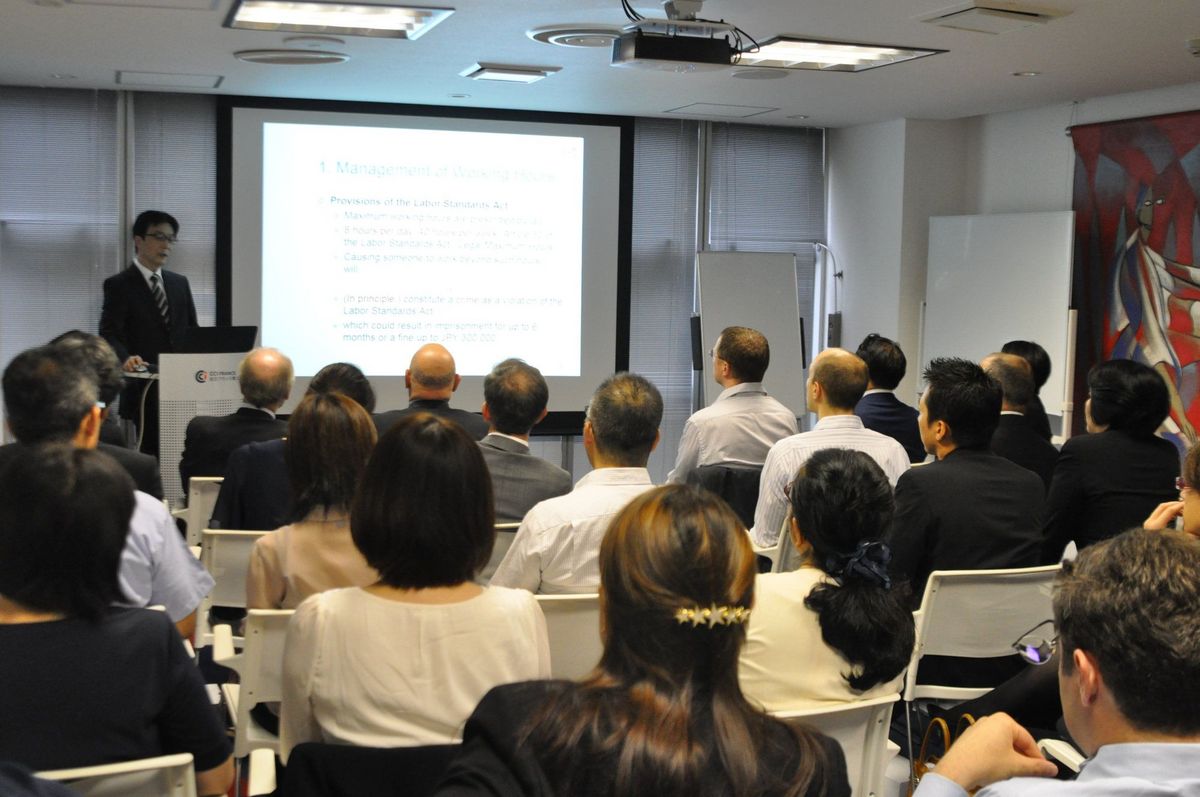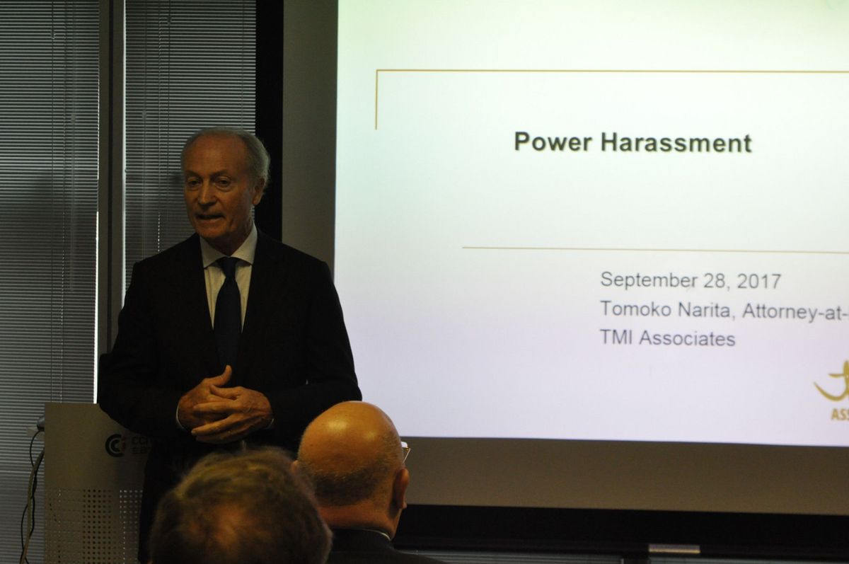 On September 28, 2017, the Tax and Regulations Committee, chaired by Philippe Dalpayrat, welcomed Counsel Tomoko Narita and Senior Associate Seiji Kurihara, both attorneys-at-law at TMI Associates. The purpose of the seminar was for managers to learn how to prevent power harassment in the workplace and monitor their employees’ working hours in light of the new regulations on overtime work.
