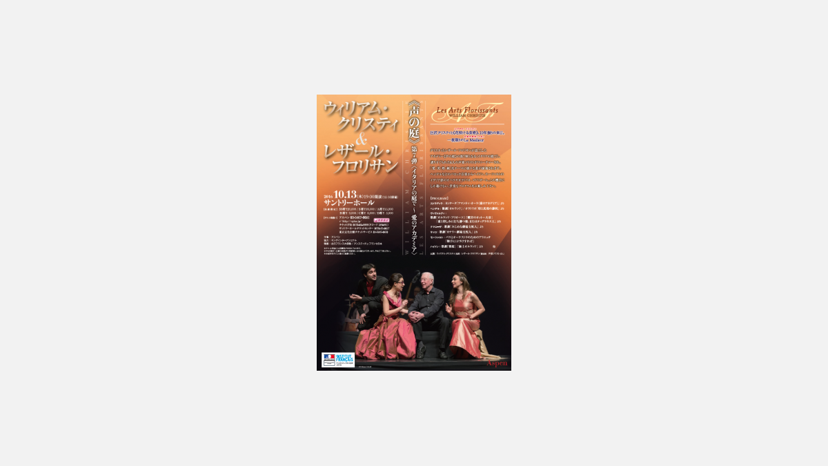 Site (en japonais) : http://www.aspen.jp/artist/orchestra/les-arts-florissants/index.shtml#2
