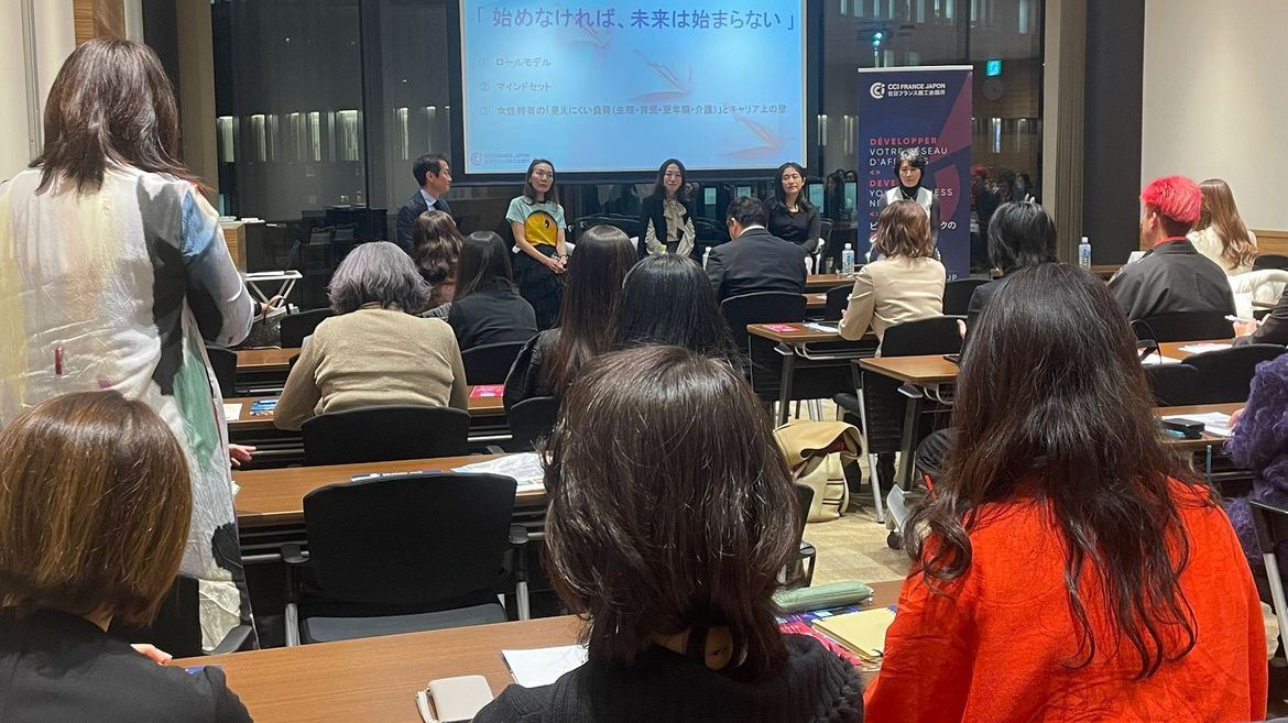 Madame Tauchi a notamment évoqué les défis auxquels elle a dû faire face en tant que femme évoluant dans un secteur industriel majoritairement masculin. Madame Morita, spécialisée dans le domaine du Femcare, a abordé les problématiques liées à la santé des femmes, telles que les règles, la maternité ou encore la ménopause, et leur impact sur la vie professionnelle. Madame Yamanouchi a souligné les nombreux obstacles qui persistent pour les femmes souhaitant accéder à des postes à responsabilités, tandis que la professeure Arai a apporté un éclairage académique en comparant la situation japonaise à celle d’autres pays développés, mettant en évidence le retard du Japon sur la question des femmes au travail.